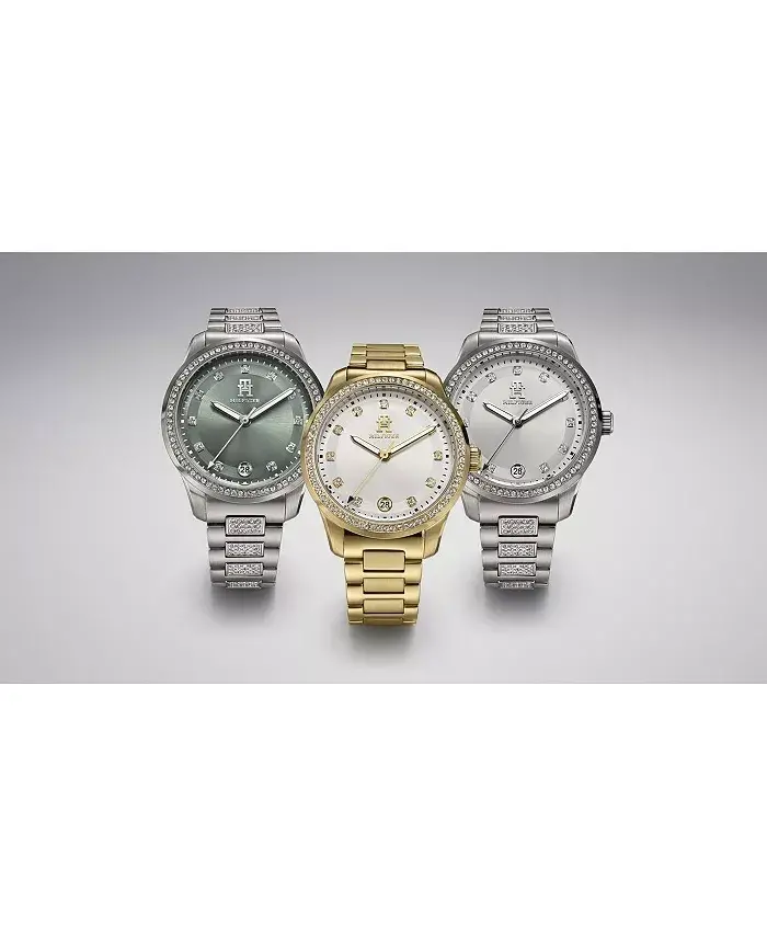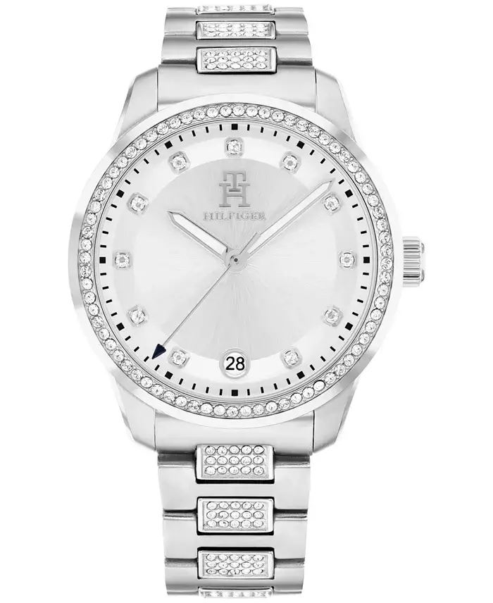 Women's Quartz Silver-Tone Stainless Steel with Crystals Bracelet Watch 36mm