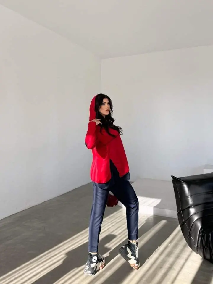 Bring your style and comfort together with the Women's Red Hooded Hem Detail Crest Reverse Stitch Look Two-Piece Set. This specially designed set will accompany you in your daily use or special moments with its modern details and comfortable fit. The energy of red and the sporty elegance of the hooded top gain a feminine touch with the hem detail. The crest detail adds a unique touch to the set, while the reverse stitch look reveals the difference in the design. Thanks to the comfort and elegance of the two-piece set, you will feel good all day long. This set, which is an ideal choice for women who want to be both stylish and comfortable, will be an indispensable part of your wardrobe. The model is wearing size M/38 and has a height of 165 cm, weight of 55 kg, chest of 90 cm, waist of 72 cm and hip measurements of 100 cm. This information will help you choose the right size for you. The vibrancy of the red color and the modern design of the set will make you stand out in any environment. Whether you make a daily combination with sneakers or achieve a more stylish look with heels, this set will adapt to any style. This set, consisting of a hooded top and matching bottom, can be combined separately or offers a complete elegance when used together. The hem detail adds movement to the set, while the crest detail helps you create a unique style. The reverse stitch look makes the design modern and different. This set is a perfect choice for women who are looking for both comfort and elegance. This special design, which should definitely be in your wardrobe, will always give you a stylish look. Color your day with the energy of red and enjoy this stylish set. Suitable for both daily use and special moments, this set will always keep you stylish and comfortable. Remember, being stylish is not just about clothes, it is also about feeling good about yourself. This team offers you both.