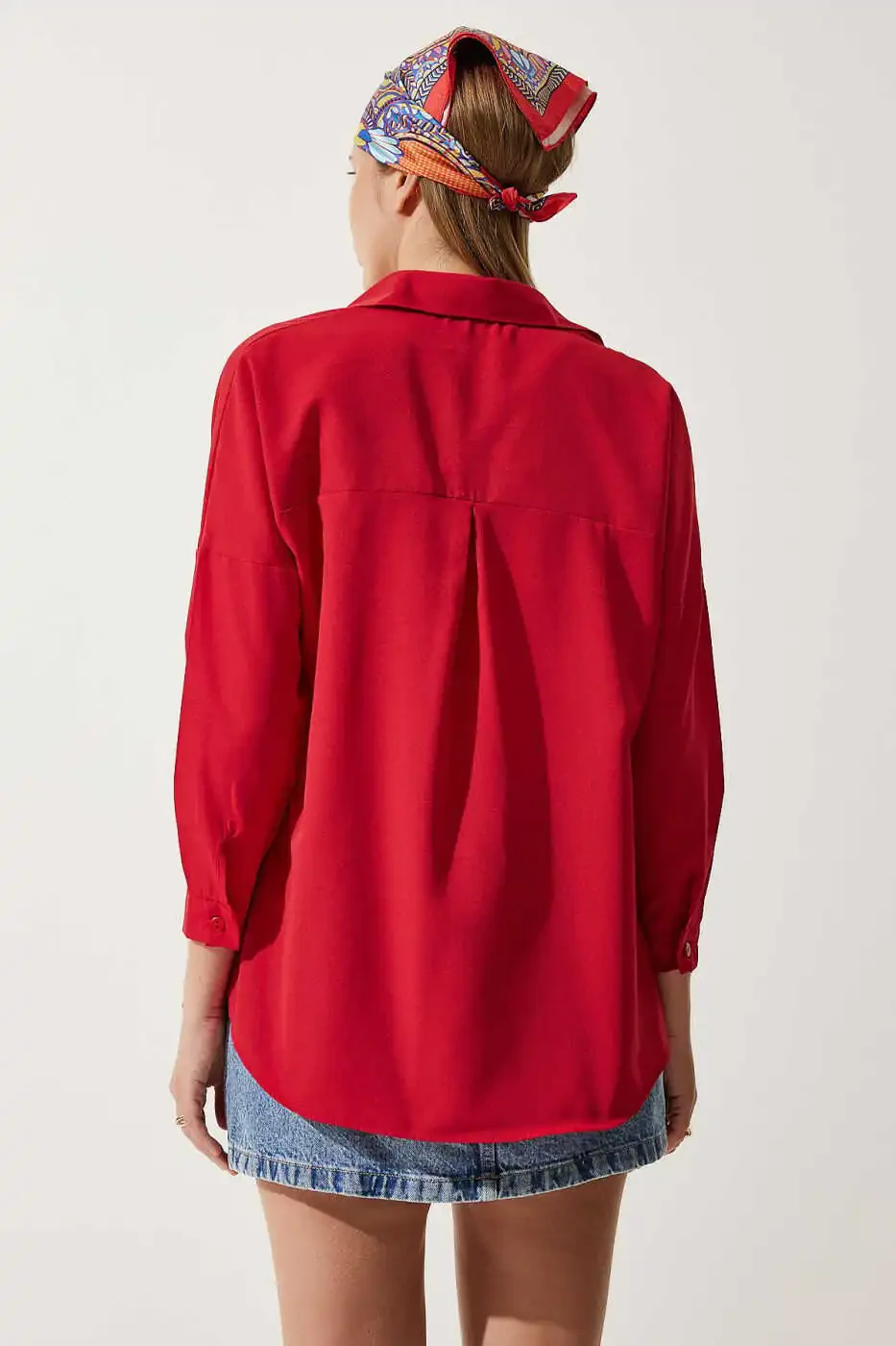 Add timeless style to your look with the Women's Red Oversize Long Basic Shirt DD00842! With its comfortable cut and eye-catching red color, you'll feel relaxed and confident in any setting. Ideal for everyday wear, this oversize shirt offers all-day comfort thanks to its breathable fabric made from a 70% cotton and 30% polyester blend. Featuring a button closure system for practical use, the shirt is easy to put on and take off. The stylish shirt collar design, long sleeves, and polar fabric type make it an ideal choice for seasonal transitions. Its simple and elegant design perfectly complements any outfit; you can achieve everyday chic with your jeans, or create an elegant combination with your skirts. Supporting sustainable fashion, this product is made from recycled materials. An indispensable piece from our Basic collection, this red shirt offers a timeless style that appeals to all age groups. Don't miss out on this product, available with Trendyol guarantee! We are offering it to you at a campaign price with over 100 in stock. Hurry, limited quantities!