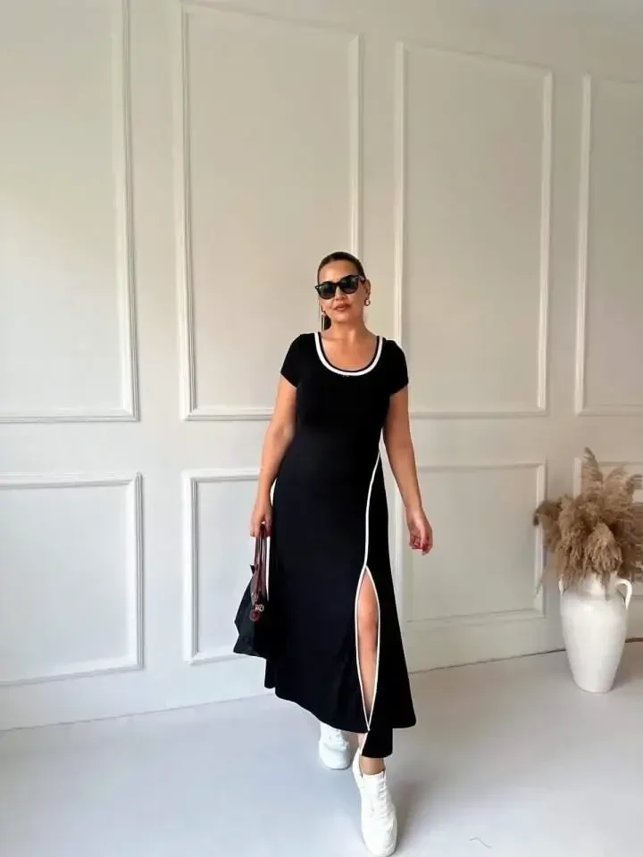 Women's Round Ribbed Collar White Slit Detailed Viscose Full Length Dress is a piece that combines elegance and comfort, and will be an indispensable part of your wardrobe in every season. Whether for daily use or a special occasion, this dress, which will highlight your elegant and modern look, offers comfort all day long thanks to the lightness of the viscose fabric. Designed with the purity of white and the boldness of the slit detail, this full-length dress will appeal to stylish women.Product DescriptionWomen's Round Ribbed Collar White Slit Detailed Viscose Full Length Dress is a versatile option that stands out with its modern and elegant design. The round ribbed collar adds a simple and stylish touch to the dress, while the white color offers the ability to easily combine with all kinds of accessories and shoes. The soft texture of the viscose fabric leaves a pleasant feeling on your skin and provides comfort throughout the day. The full-length design of the dress creates an elegant silhouette, while the slit detail adds a modern touch to your elegance without restricting your freedom of movement. Whether you wear it with heels at a special occasion or with sandals on a daily outing, this dress allows you to express your style in any environment. This dress, which offers long-lasting use thanks to its high-quality viscose fabric, is easy to iron and practical to care for. It is a timeless piece that should definitely be in your closet. This dress not only makes you look stylish, but also makes you feel good. Thanks to its light and breathable fabric, it prevents sweating in hot weather and offers a cool and fresh use. This design, which combines classic and modern lines, appeals to all ages and styles. Whether you get a more feminine look by emphasizing your waist with a belt, or create a comfortable style by leaving it loose, the choice is yours. Women's Round Ribbed Collar White Slit Detailed Viscose Full Length Dress is a candidate to be the most loved piece of your wardrobe.Product Features* Round Ribbed Collar* White color* Slit Detailed* Viscose Fabric* Full LengthAdditional InformationThe size on the model is S/36. The fabric content of our product is 100% Viscose. Low heat ironing is recommended. Wash the product in a delicate washing program for long-lasting use.