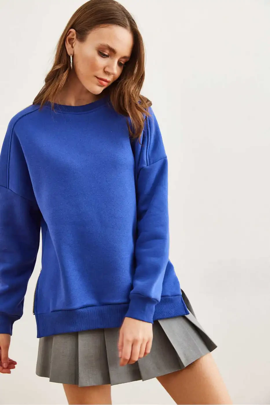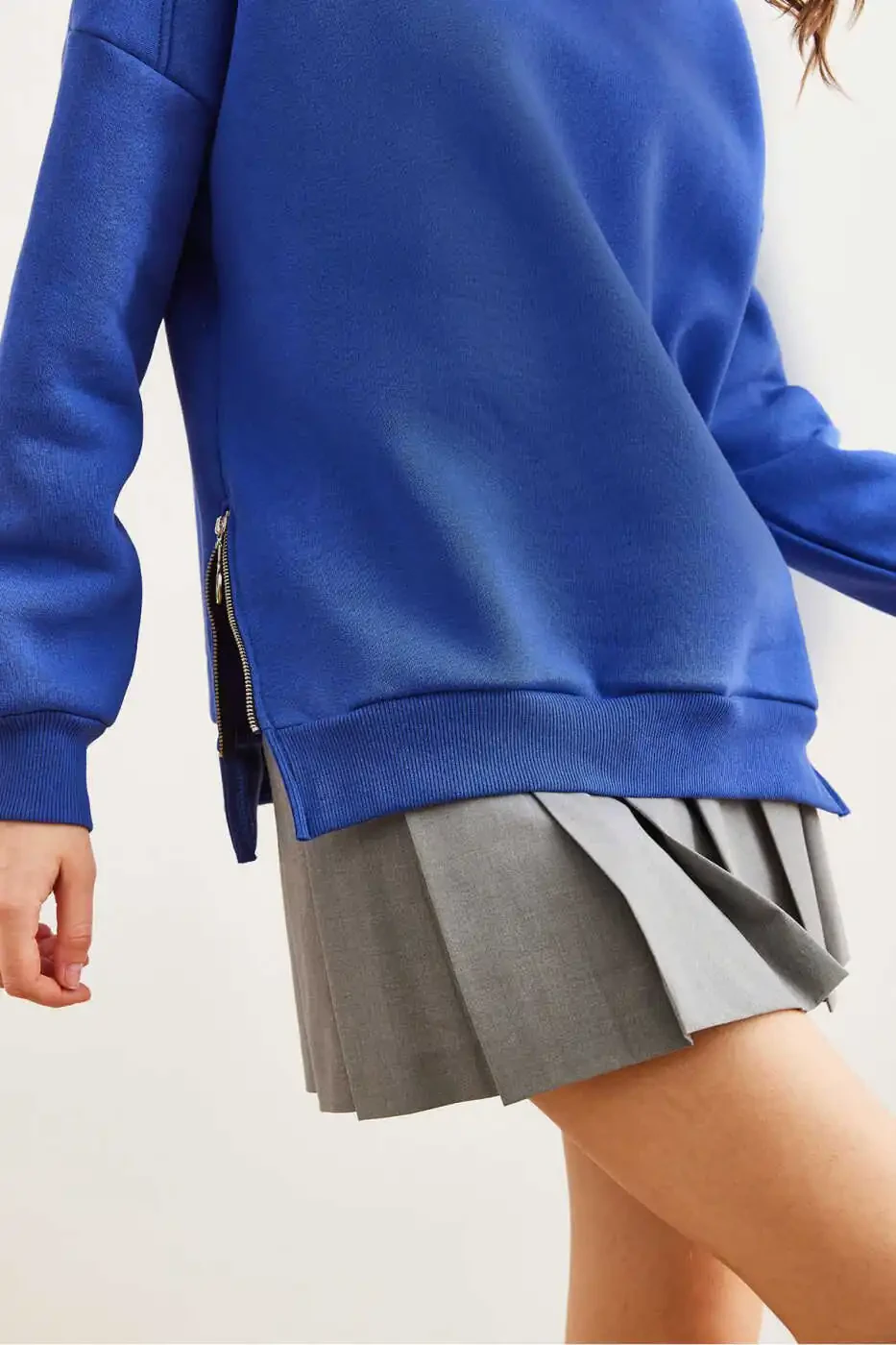 Introducing the Women's Saks Blue Side Zipper Detailed Polar Lined Thick Sweatshirt SWT-19000624, your perfect companion for keeping warm and stylish in the crisp fall breeze! This premium sweatshirt is crafted from a blend of 70% cotton and 30% polyester, ensuring both comfort and durability. Unique style is added with zipper details on the sides, providing extra warmth during chilly days. Lined with a plush polar fleece on the inside, this sweatshirt traps your body heat perfectly. Measuring 67 cm in length and 56 cm in chest width, it's showcased on our model who is wearing a size S/36/1. Colors may vary from studio shots due to differences in lighting conditions. Shipped by Trendyol, this product is available at a campaign price with over 10 units in stock. It may be sold by multiple vendors. Trendyol ranks products based on seller ratings, delivery times, promotions, free shipping status, express delivery options, inventory information, and product categories. A maximum of 10 sweatshirts can be purchased in a single order. Different limits may apply for corporate orders. The product is eligible for free returns within 15 days.
