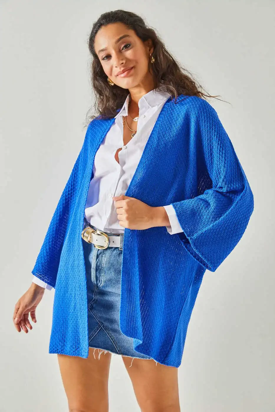 Step into the new season with this stylish and comfortable women's saks blue batwing cardigan, perfect for spring days.