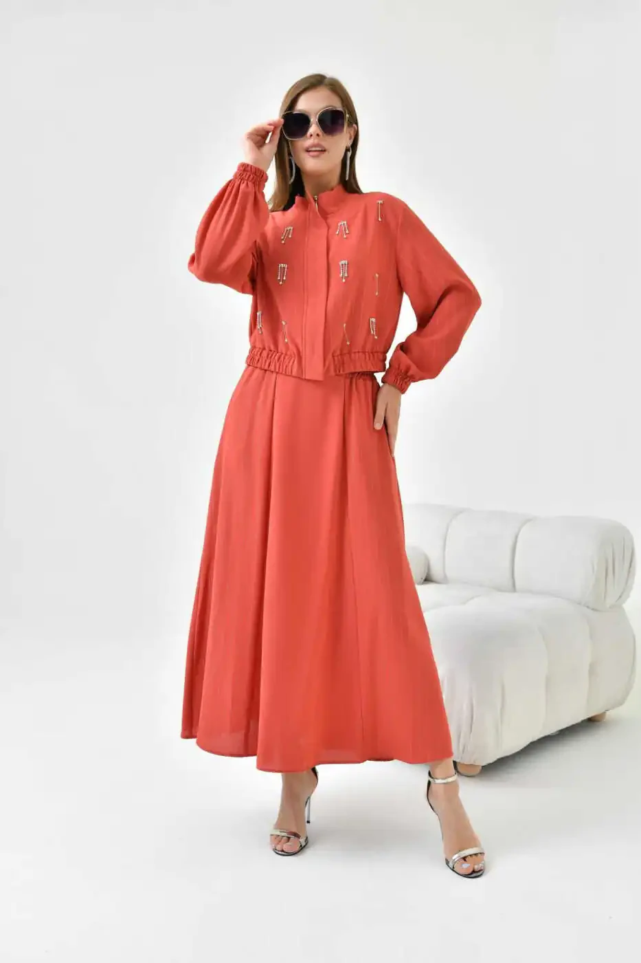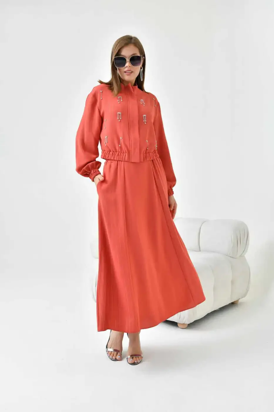 Women's Glitter Crepe Skirt Suit - Terracotta 30839 | Elegant and Comfortable