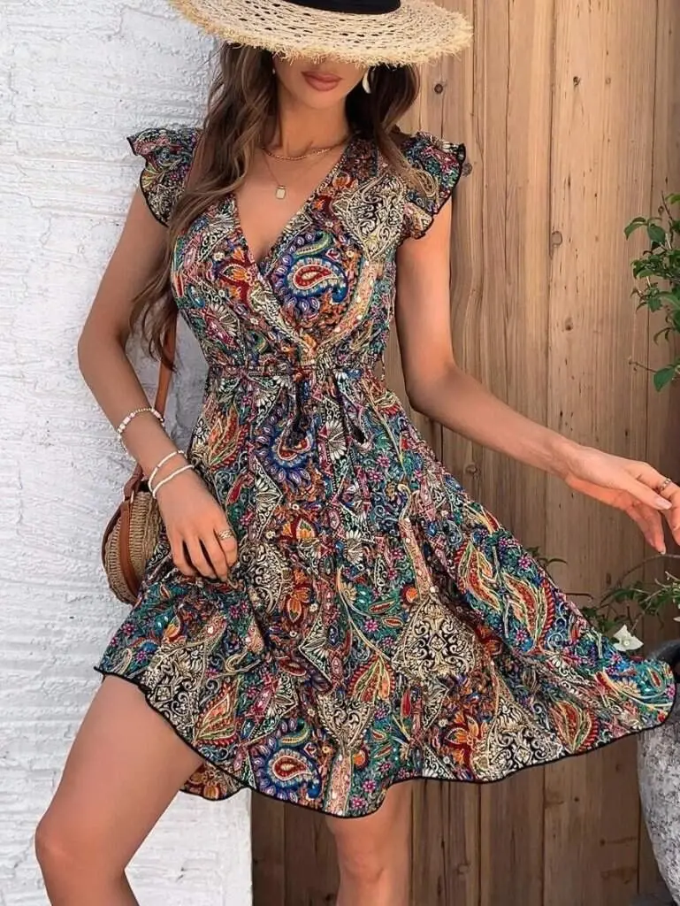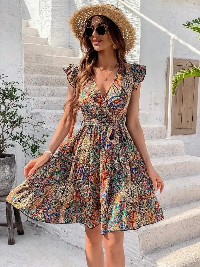 Carry the energy of summer with you with the Women's Short Butterfly Sleeve Wrap-Neck Supreme Dress. This stylish and comfortable dress is a perfect choice for both daily use and special occasions. The M/38 size on the model is showcased on a mannequin with the following measurements: height 165 cm, weight 55 kg, chest 90 cm, waist 72 cm, and hips 100 cm. The wrap-neck of the dress offers an elegant look, while the short butterfly sleeves complement your style without restricting your freedom of movement. The soft texture of the supreme fabric ensures comfortable wear all day long. You can reflect your style with different pattern options and create a unique style by combining it with various accessories. This dress, which will be an indispensable part of your wardrobe, is a candidate to be the favorite piece of summer months. It is an ideal choice for women who want to be both stylish and comfortable. This dress, which appeals to every taste with different color and size options, is waiting for you in our online store. Order now to feel special and express your style. This dress is not just a piece of clothing, but also a style statement. You can create different styles by combining it with sandals for daily use and high heels for special occasions. Thanks to its light and breathable fabric, you can easily use it even in hot weather. This piece, which should definitely be in your closet, will help you maintain your elegance in every season. The short butterfly sleeves add a lively and dynamic air to the dress, while the wrap-neck detail provides a feminine touch. The high-quality structure of the supreme fabric offers long-lasting use. The cut of the dress beautifully reveals your body lines, while its comfortable fit allows you to feel comfortable all day long. Whether for daily outings or evening dinners, you can maintain your elegance in any environment. This dress will be indispensable for stylish women.