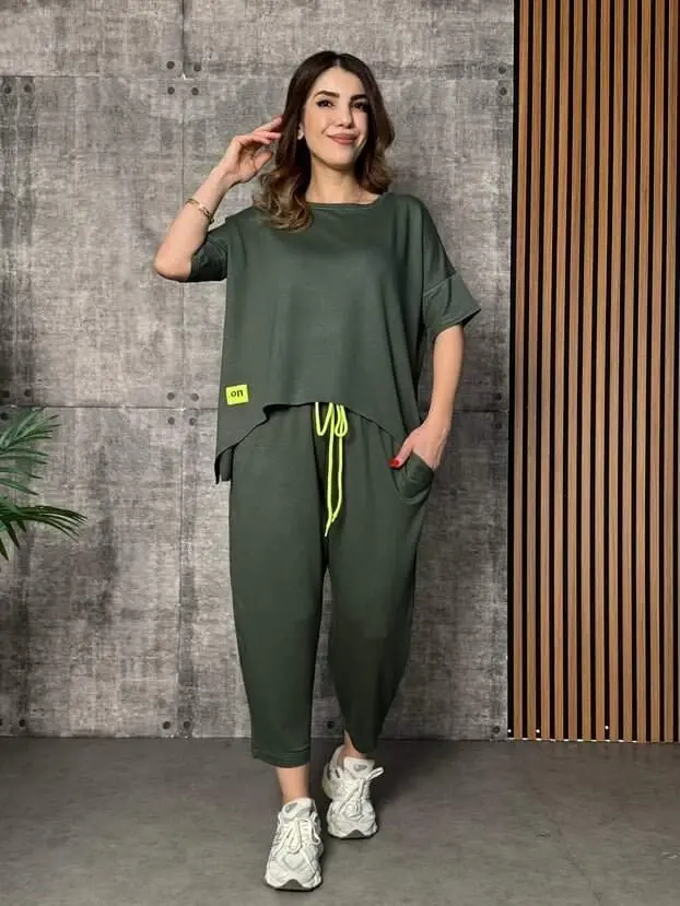 Experience elegance and comfort together with the Women's Short Sleeve Crew Neck Viscose Double Yarn Blouse and Pants Set. This special design set will accompany you in every environment, from your daily use to your special moments. The soft texture of viscose offers comfort all day long, while the double yarn feature makes it an ideal choice for seasonal transitions. This set, consisting of a short-sleeved blouse and comfortable-cut pants, allows you to create both sporty and stylish combinations. The crew neck detail adds a modern touch to the blouse, while the comfortable cut of the pants does not restrict your freedom of movement. The product on the model is size M/38, and the model's measurements are Height: 165, Kg: 55, Chest: 90, Waist: 72, Hips: 100. These measurements will help you choose the right size. This set, which will be an indispensable part of your wardrobe, appeals to every taste with its different color and size options. You can wear this set whether you are resting at home, meeting with your friends, or having a light dinner. Enjoy comfort without sacrificing your elegance. The breathable structure of the viscose fabric prevents sweating and keeps you feeling fresh all day long. The elastic waistband on the pants fits your body perfectly and offers comfortable use throughout the day. This set is a perfect choice for women who want to be both stylish and comfortable. It is an ideal option for those who want to achieve elegance without having to deal with combining. You can wear the two pieces together or use them separately in your different combinations. You can create your own style by combining the blouse with your jeans and the pants with different tops. This set will be one of the most versatile pieces in your wardrobe. This set, which is the choice of women who want to be both comfortable and stylish, offers all-day comfort with the soft feeling of viscose fabric. Thanks to its double yarn structure, it is durable and provides long-lasting use. This set, which offers elegance and comfort together, is a piece that every woman should have in her wardrobe. Remember, style is not just about clothes, it's also about comfort. With this set, you can both have style and enjoy comfort all day long. With its all-season wearability, it will be the savior of your wardrobe. Whether you create a casual combination with sneakers or a stylish look with heels. This set is a versatile piece that can adapt to any style.