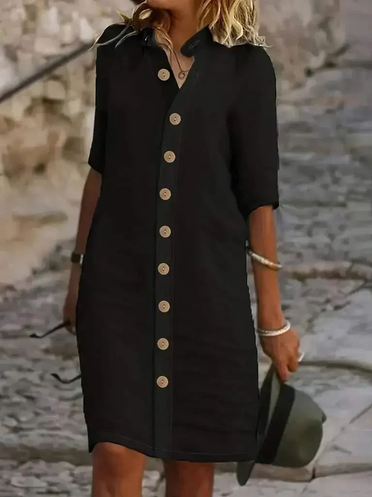 Women's dress, short sleeves, mandarin collar, Muslim dress, summer dress, button-front, comfortable dress, casual dress, elegant dress, short dress, pastel colors