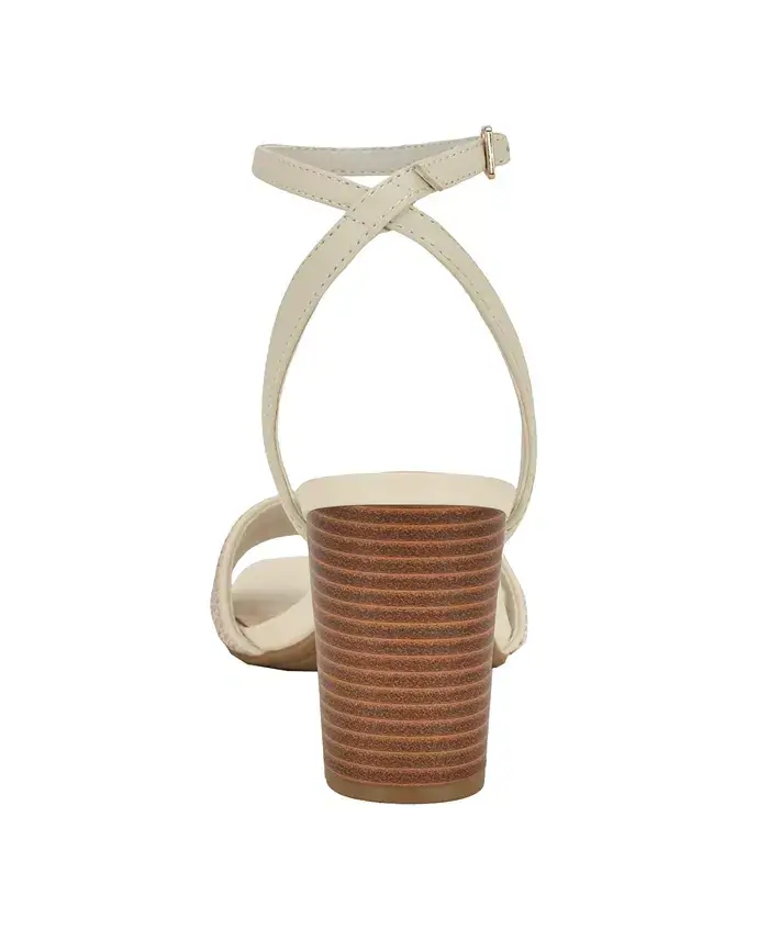 The Tommy Hilfiger Women's Skilars with dimensional logo hardware detailing stands out atop the textured vamp of an ankle strap sandal balanced by a stacked block heel. Est. 1985, Tommy Hilfiger is a leading lifestyle brand celebrating the essence of American style. Heel height - 2.76" Heel type: Block/Stacked/Plastic heel Open/Square toe Buckle closure Upper: Textile, manmade; Lining and Sole: manmade Spot clean Imported