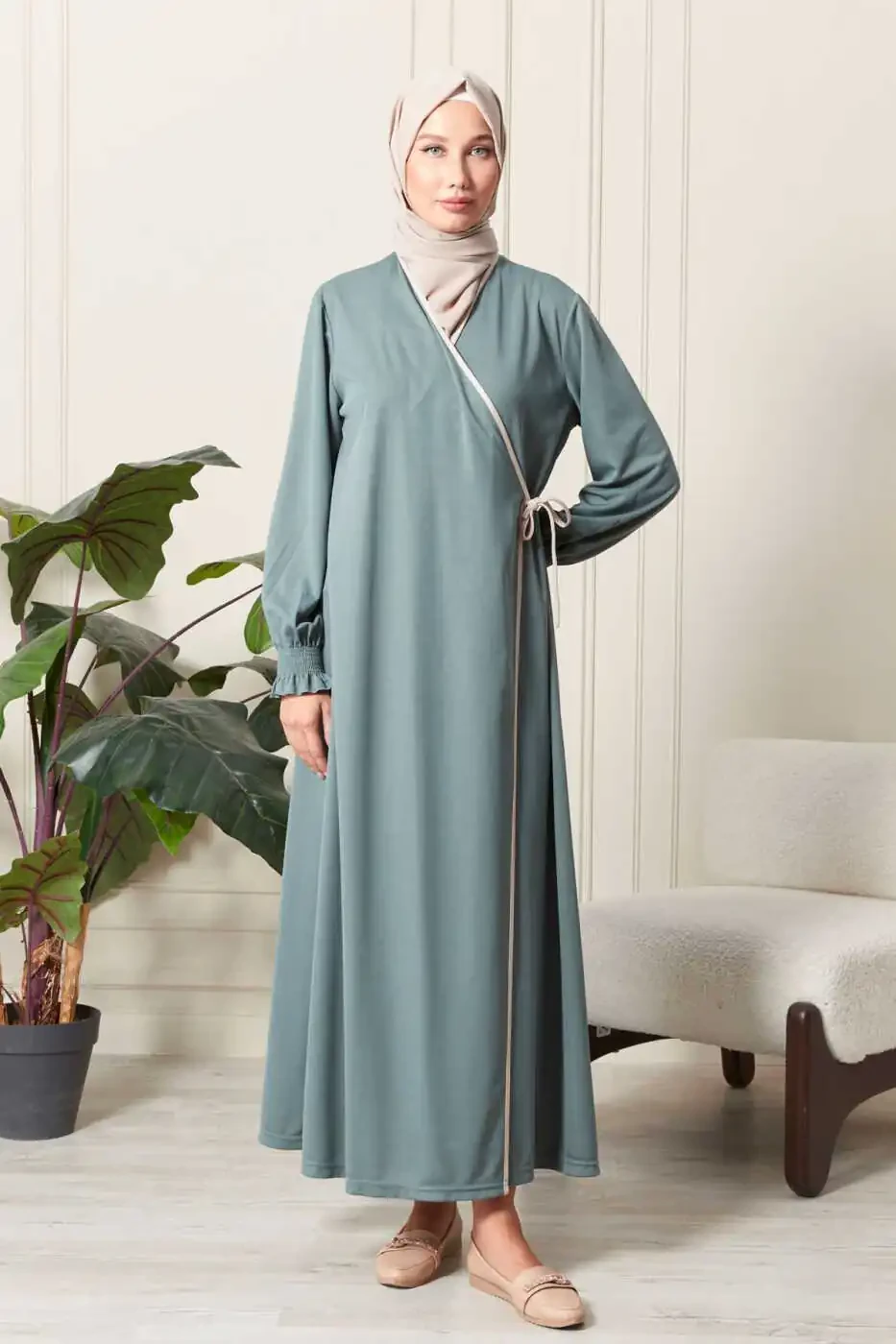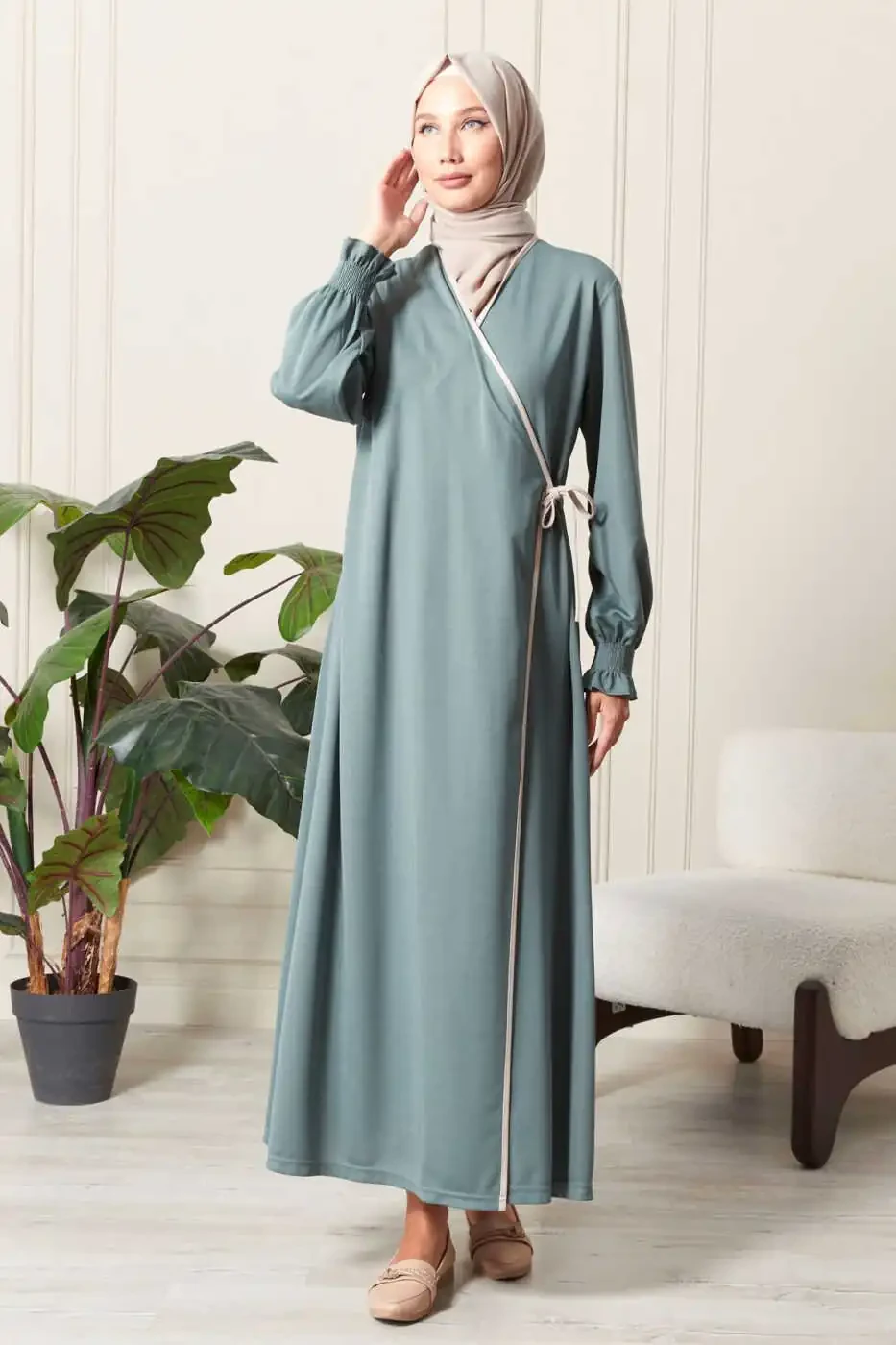 - Crossover Neckline: The modest and chic crossover neckline adds a sophisticated touch to the dress.