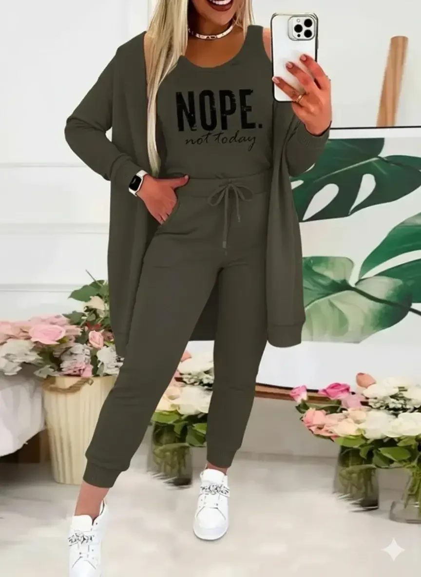 Meet the Women's Sleeveless Round Neck Written Viscose Two-Thread Blouse Jacket and Pants 3-Piece Set that offers both comfort and elegance in the hot summer days! This special design will accompany you in every environment, from your daily use to special moments. Thanks to the soft texture of viscose and the lightness of the two-thread fabric, you will experience comfort all day long, and you will dazzle with its stylish design. The sleeveless blouse in the set draws attention with its round neck and modern writing, while the jacket you will wear on it will keep you warm in cool weather. The pants, on the other hand, do not restrict your freedom of movement with their comfortable cut and offer a stylish stance. This 3-piece set is a candidate to be one of the indispensable pieces of your wardrobe. Whether you make a daily combination with sneakers or attend a stylish invitation with high heels, you will show your style in any case. The model is M/38 and the model's measurements are: Height: 165, Kg: 55, Chest: 90, Waist: 72, Hip: 100. This information will help you choose the right size. While the breathable structure of the fabric eliminates the problem of sweating, the natural shine of viscose will give you a different air. This set is an ideal choice for women who prioritize not only elegance but also comfort. Don't miss this 3-piece set to renew your wardrobe and carry the energy of summer on you. Remember, being stylish is not only about clothes, but also about feeling good about yourself. This set will make your day more enjoyable by offering you both. Express your style freely with this versatile set that you can prefer in both daily use and special occasions. The quality of the fabric and the careful workmanship of the seams offer a long-lasting use, while its modern design will always make you trendy. You can get an energetic look by combining it with the vibrant colors of summer, or you can highlight your elegance with more plain colors. The choice is yours! This set is not just a piece of clothing, but also a lifestyle. Value yourself and complete your style with this special design.