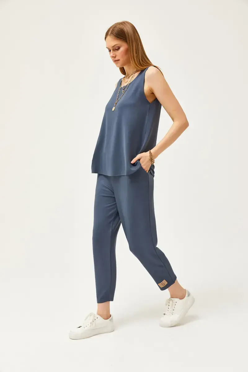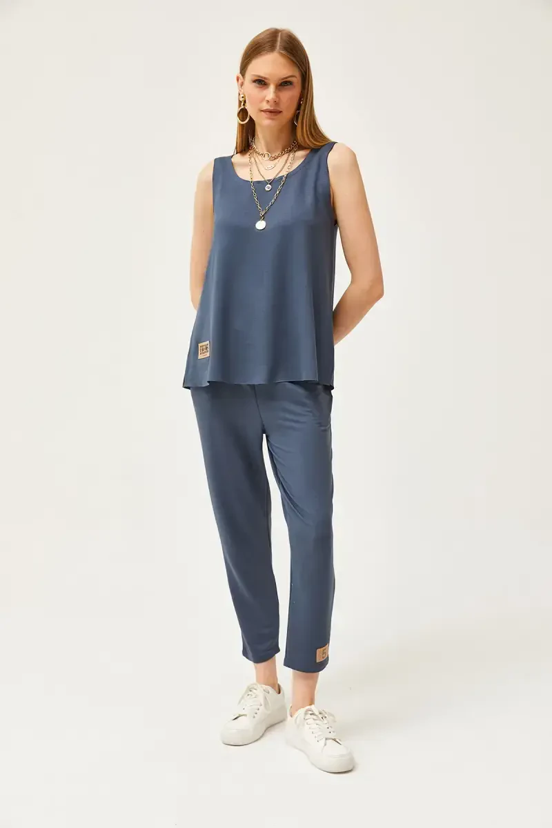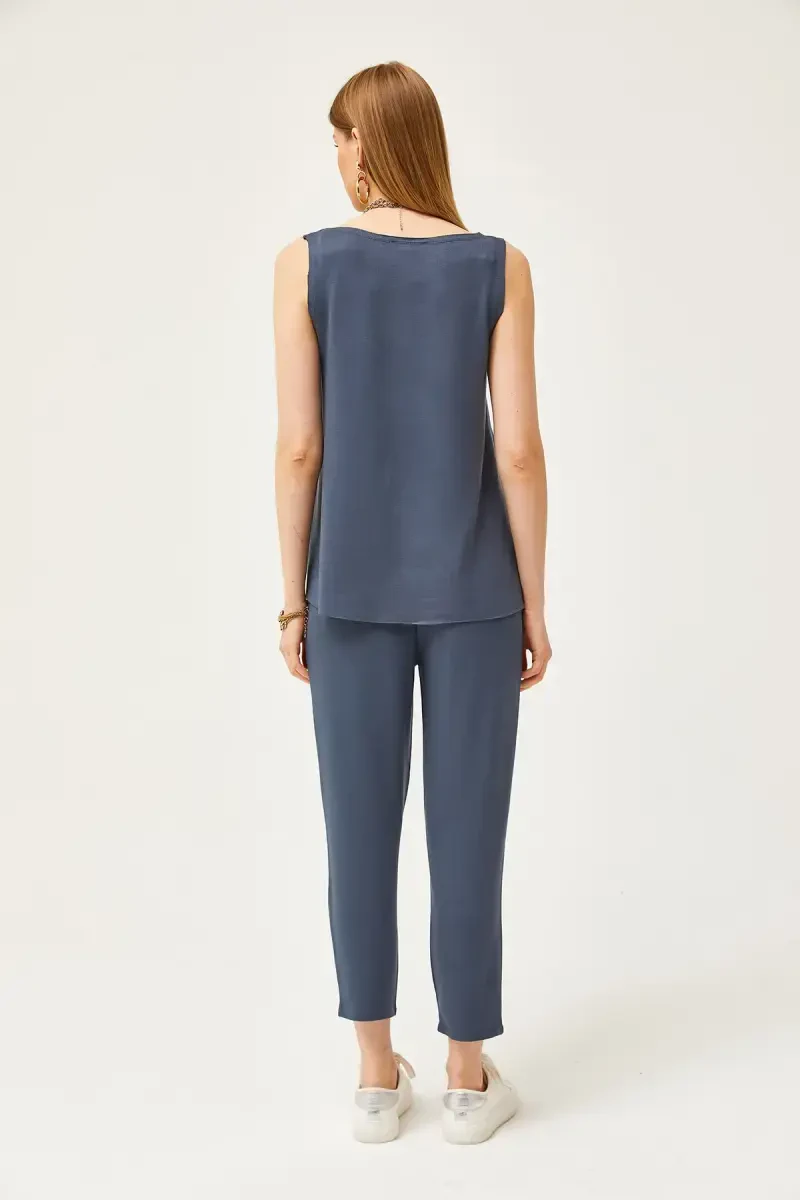 Meet the Women's Smokey Sleeveless Slouchy Blouse and Bottom Crystal Set TKM-19000271-Smokey that combines elegance and comfort! This special design set allows you to express your style both in daily use and on special occasions. The noble stance of the smokey color is enriched with crystal details, adding a modern touch. The slouchy blouse and comfortable cut bottom offer comfort all day long, while stylish details ensure you attract attention in any environment.Product DescriptionThe Women's Smokey Sleeveless Slouchy Blouse and Bottom Crystal Set TKM-19000271-Smokey is a must-have piece in the modern woman's wardrobe. The timeless elegance of the smokey color, the comfort of the slouchy blouse, and the sparkle of crystal details come together to create a unique combination. This set allows you to highlight your elegance both in your daily activities and at special events. The sleeveless design of the blouse helps you stay cool and fresh in hot weather, while its slouchy cut does not restrict your freedom of movement. The comfortable cut of the bottom offers all-day comfort, while its stylish details ensure you dazzle in any environment. Crystal details add an elegant touch to the set, taking your style to the next level. This set can be easily combined with different accessories and allows you to reflect your personal style. Whether you create a casual chic look with sneakers or prepare for a special invitation with heels, this set will accompany you in any situation. Thanks to its high-quality fabric, this set offers long-lasting use and will be an indispensable part of your wardrobe. The noble stance of the smokey color adapts to all skin tones, while crystal details enhance your sparkle. This set not only makes you look stylish but also makes you feel good. Thanks to its comfortable cut, it offers comfortable use all day long, while its stylish details increase your self-confidence in any environment. Redefine your style with the Women's Smokey Sleeveless Slouchy Blouse and Bottom Crystal Set TKM-19000271-Smokey and enjoy every moment.Product Features* Color: Smokey* Design: Sleeveless slouchy blouse and comfortable cut bottom* Detail: Crystal details* Fabric: High quality, comfortable and stylish fabric* Usage: Suitable for daily and special occasions* Style: Modern and stylishAdditional InformationIt is important to follow the washing instructions on the label for the long life of the product. Different size options are available. Accessories are not included in the product.