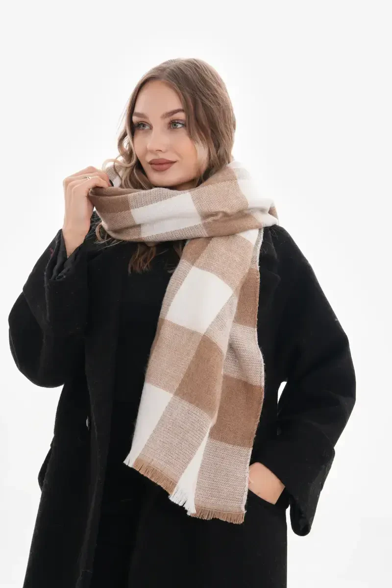 It gently touches your skin thanks to its soft texture. The plaid pattern adds elegance to every combination. It keeps you warm in cold weather. Size: 70x180 cm. 100% Acrylic.