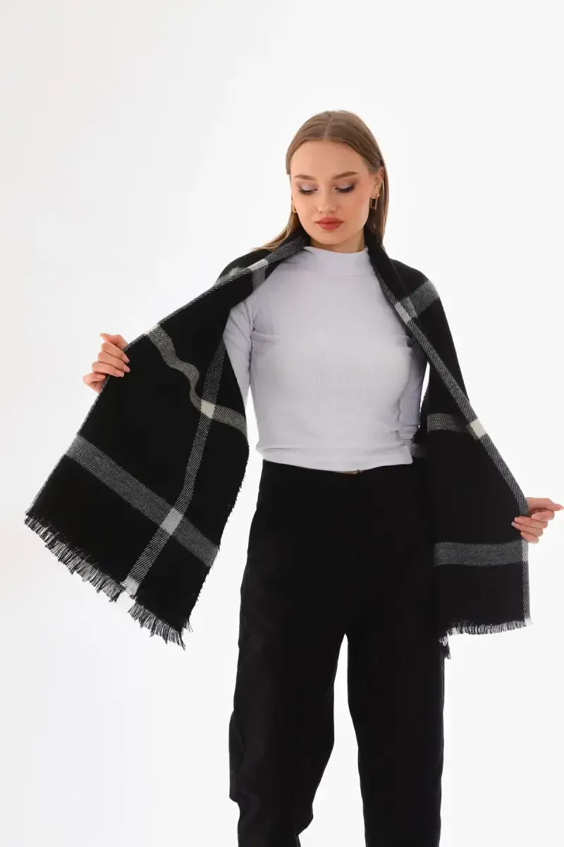 Meet the Women's Soft Textured Plaid Scarf Unisex - Black, the indispensable item for cold weather that will complement your elegance! This special design scarf is offered to you with RitaGarcia assurance. The black plaid pattern that easily matches all your outfits allows you to reflect both your classic and modern style. Its soft texture provides comfortable use all day long while protecting you from the cold. Thanks to its unisex design, it is an ideal option for both women and men. This scarf is a candidate to be the most loved piece of your wardrobe! Moreover, this product, which is offered at an advantageous campaign price, is available in limited quantities. Do not miss this scarf that offers elegance and comfort together!