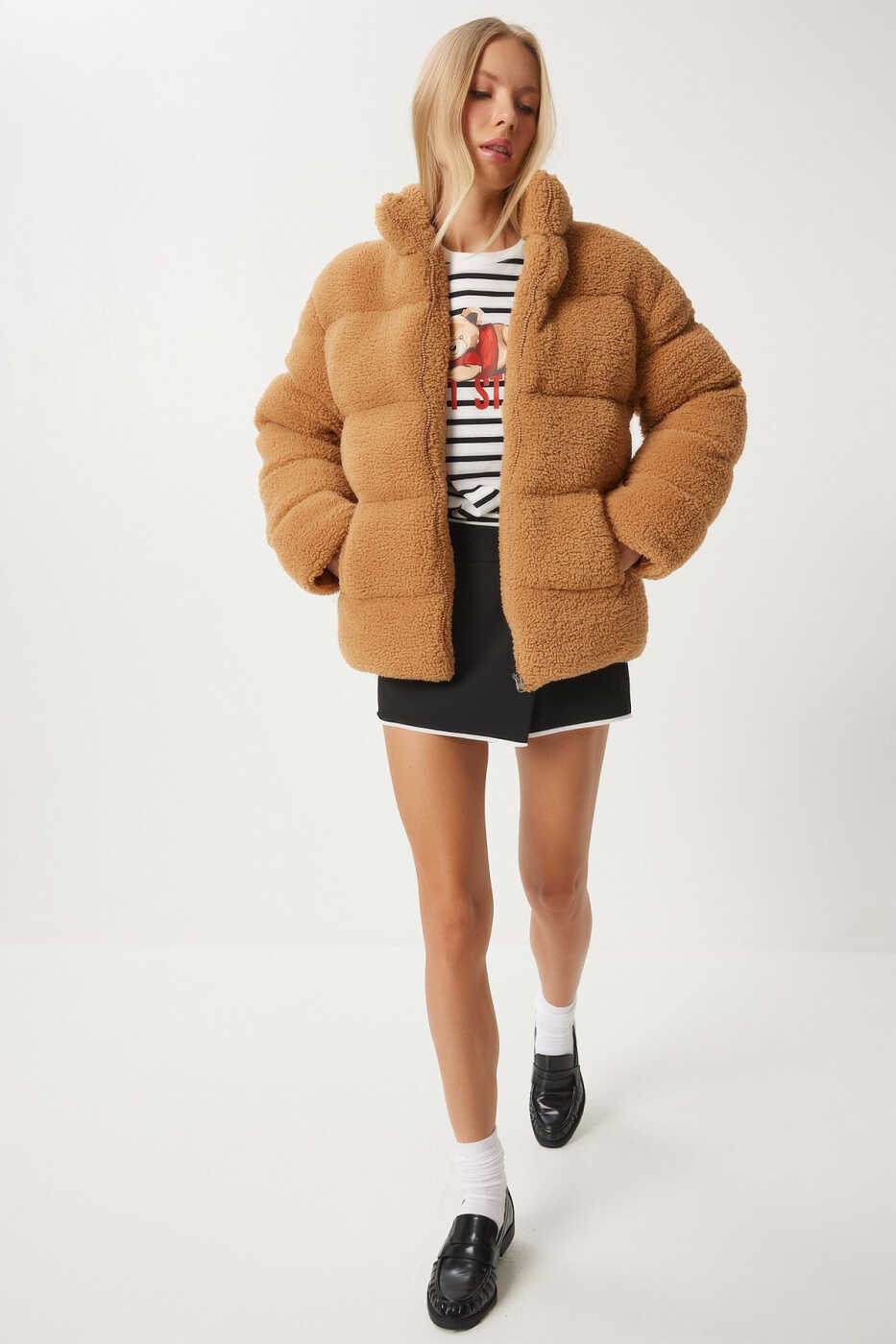 The Women's Taba High-Neck Plush Puffer Jacket QA00002 is the ideal choice for those seeking both style and warmth on cold winter days. It stands out with its modern look and superior comfort. Shipped by Trendyol, this stylish jacket aims to reach many users with its stock exceeding 10 units. Being offered by multiple sellers, you can easily compare the best prices and delivery options. Its practical zippered design allows for easy on and off. The plush detailing offers a stylish look while keeping you warm and protected from the cold. The high neck protects your neck from the cold while complementing your style. The puffer style gives a modern and trendy look, while also providing extra warmth. The regular fit provides a comfortable feel and suits all body types. Its plain and simple design can be easily paired with different outfits, offering timeless style. Its lined structure provides extra comfort and warmth, offering extra protection in cold weather. With its wide range of uses, this jacket appeals to all age groups, and its regular length suits different body heights. You can buy with peace of mind thanks to the 15-day free return policy, ensuring you are completely satisfied with your purchase. Please note that Trendyol reserves the right to cancel orders exceeding 10 units. Different limits may apply for corporate orders. For detailed information, please review the return conditions.