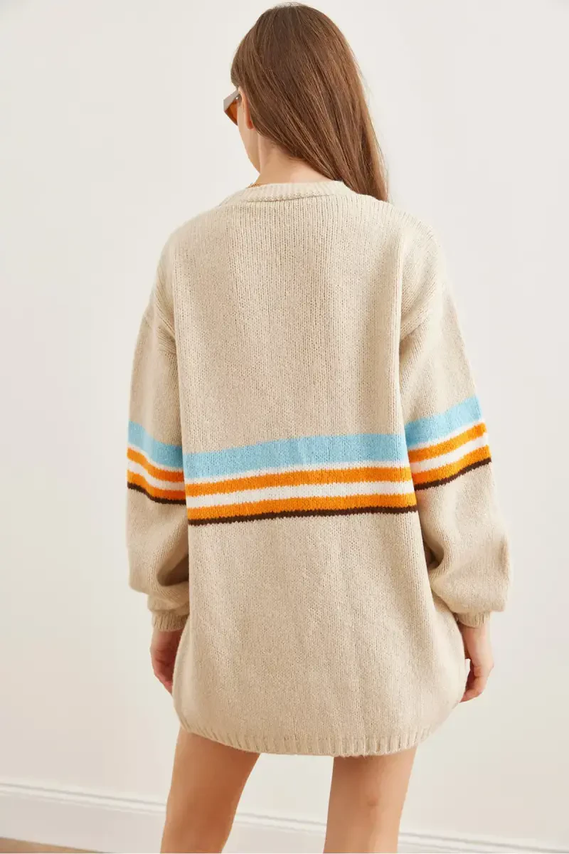 Women's Stone Colored Striped Soft Textured Knitted Cardigan HRK-19000299-Stone is a candidate to be one of the indispensable pieces of your wardrobe, bringing together elegance and comfort. This knitted cardigan, carefully designed by Olalook official, will easily adapt to any combination with its stone color and elegant stripe details. This cardigan, which you can enjoy wearing all day long thanks to its soft texture, is an ideal choice for both daily use and special moments. This knitted cardigan, which keeps you warm in cold weather while ensuring you do not compromise on your elegance, attracts attention with its quality materials and modern design. The blend of 70% acrylic, 22% polyester and 8% elite gives the cardigan both durability and softness. In this way, it offers long-lasting use while providing a gentle touch to your skin. The standard size of the cardigan allows it to easily adapt to different body types. The product size is Boy/Chest: 78/55 cm, creating a very stylish and modern look on you. The model's measurements (Height: 1.74, Chest: 80, Waist: 60, Hip: 90) and the standard size on it can give you an idea of how the cardigan will look. Women's Stone Colored Striped Soft Textured Knitted Cardigan can easily match your different combinations. You can create a casual look with jeans, achieve a more feminine look with skirts, or combine it with a stylish dress to attend a special occasion. This cardigan, which will complement your style in every situation and highlight you, is a candidate to be the most loved piece of your wardrobe. The colors of the product may vary due to the difference in light in studio shots. Therefore, please note that there may be slight differences between the actual color of the product and the color you see on the screen. However, the stone color of the cardigan will maintain its elegance in all situations and add a sophisticated touch to your combinations. This knitted cardigan, offered with Olalook official assurance, is offered for sale at a campaign price and is limited in stock. Don't miss this opportunity, place your order now and complete your elegance. Remember that a product can be sold by more than one seller and sellers are ranked according to the price they determine for the product, seller scores, delivery statuses, promotions and whether the shipping is free. Therefore, it is important to be careful when shopping and choose the option that suits you best. A maximum of 10 of this product can be ordered. Trendyol reserves the right to cancel orders over 10 units. This limit is not valid for corporate orders, and different limits may be set for corporate orders. If you do not like the product, you can benefit from the free return option within 15 days. For detailed information, click [page="return_conditions"] and review the return conditions. Enjoy being both stylish and comfortable with the Women's Stone Colored Striped Soft Textured Knitted Cardigan HRK-19000299-Stone. This indispensable piece of your wardrobe will accompany you in every season and complete your style.