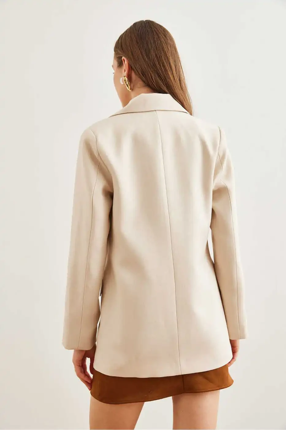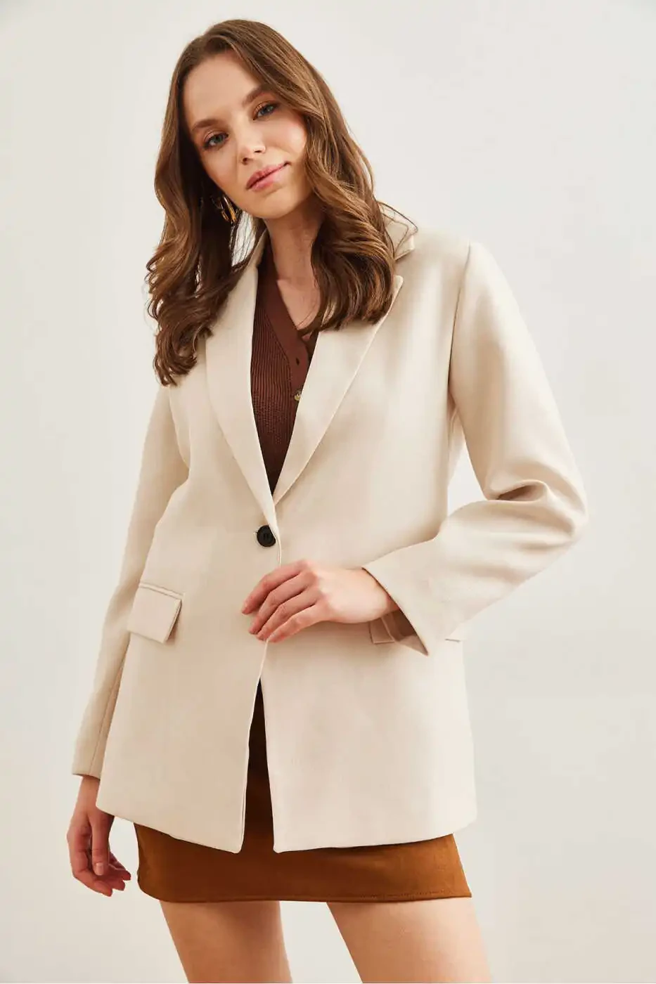 **Women's Stone Single Button Pocket Flap Wool Effect Blazer Jacket CKT-19000407**