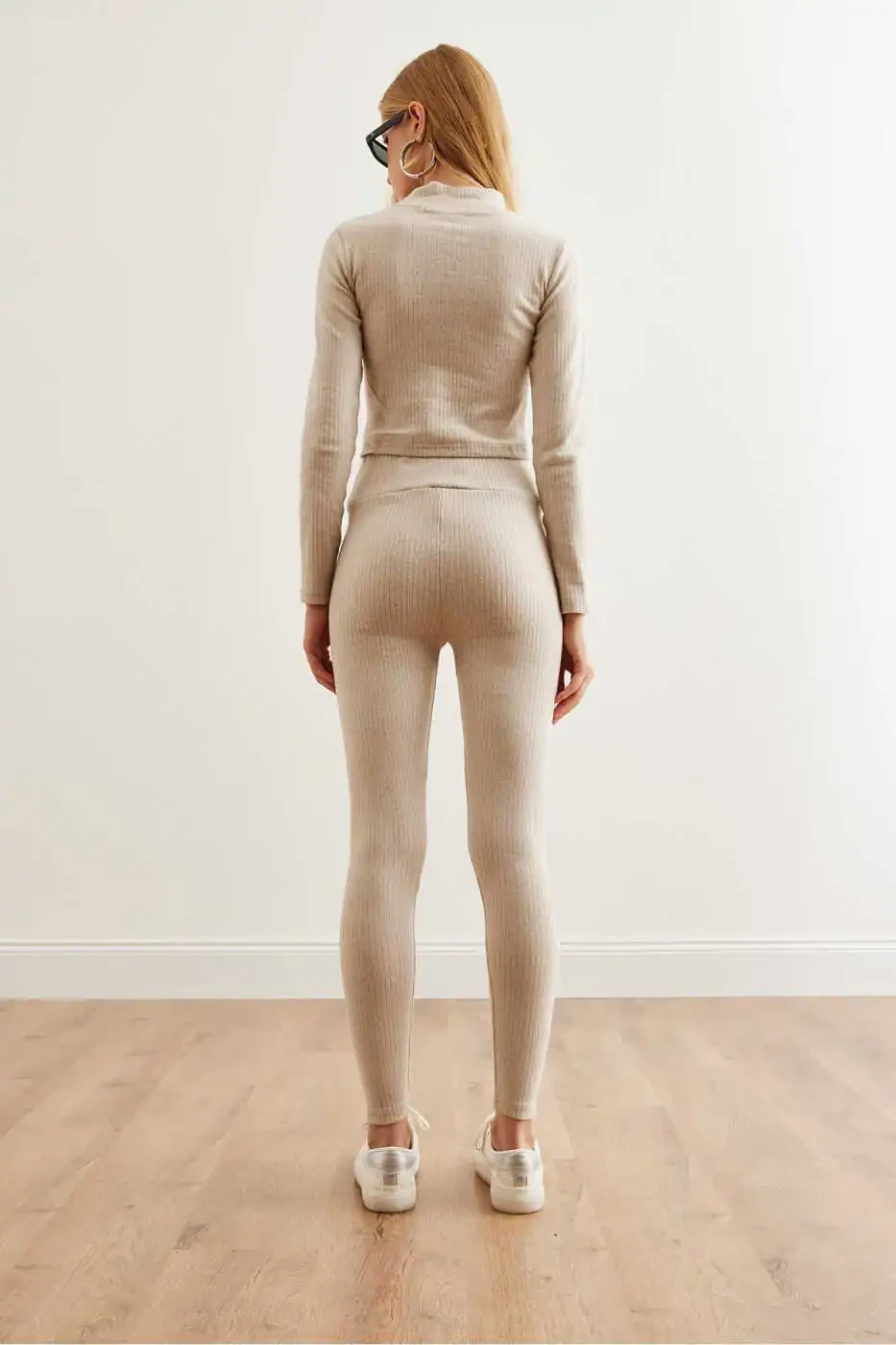 This Women's Thistle Corduroy Tracksuit with Stone Stitching provides comfort with its thistle fabric structure and is an ideal choice for seasonal transitions. Its long sleeve design keeps you warm while looking stylish even in cool weather. The knitted fabric offers freedom of movement thanks to its flexible structure, while its corded texture adds a modern touch. An elastic waistband ensures a comfortable fit, so you won't compromise on comfort throughout the day. The fitted cut perfectly complements your body lines, creating a stylish silhouette. This all-season suit will be a wardrobe staple every season. With its half-turtle neck detail, it offers both comfort and a stylish look. Ideal for casual everyday wear, it combines comfort and elegance. Its skinny silhouette showcases a modern and graceful stance, while its tapered leg design keeps up with the trends. Appealing to all age groups, this suit will become an indispensable part of your wardrobe.