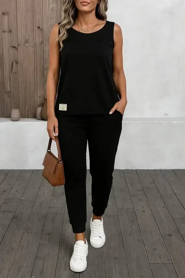 Women's Sleeveless Round Neck Viscose Two-Thread Blouse and Sweatpants Set is a special design that combines comfort and elegance. Thanks to the unique softness of the viscose fabric, it offers comfort all day long, while its two-thread structure provides ideal use in seasonal transitions. The elegant round neck detail of the sleeveless blouse gives a modern and stylish look, while the comfortable cut of the sweatpants supports your freedom of movement. It is an excellent choice for women who do not want to compromise on comfort, whether in daily use or in home wear. You can create a dynamic style by combining it with sneakers, or enjoy comfort at home with your slippers. You can enrich your wardrobe by choosing the one that suits your style best with different color options. This team is designed to meet the expectations of women who are looking for both comfort and elegance. The breathable structure of the fabric prevents sweating throughout the day and ensures that your skin stays comfortable. Thanks to its flexible structure, it fits your body perfectly and does not restrict your movements. This set, consisting of two pieces, can be used both together and separately with different combinations, thus providing versatile use by easily harmonizing with other pieces in your wardrobe. Its stylish design and comfortable cut allows you to feel safe and free in any environment. This team is not just a garment, but also a lifestyle. It is an ideal option for women who want to look stylish and be comfortable all day long. This team, which will be the indispensable part of your wardrobe, will accompany you at all times and help you reflect your style. You should definitely try this set to feel special and comfortable.