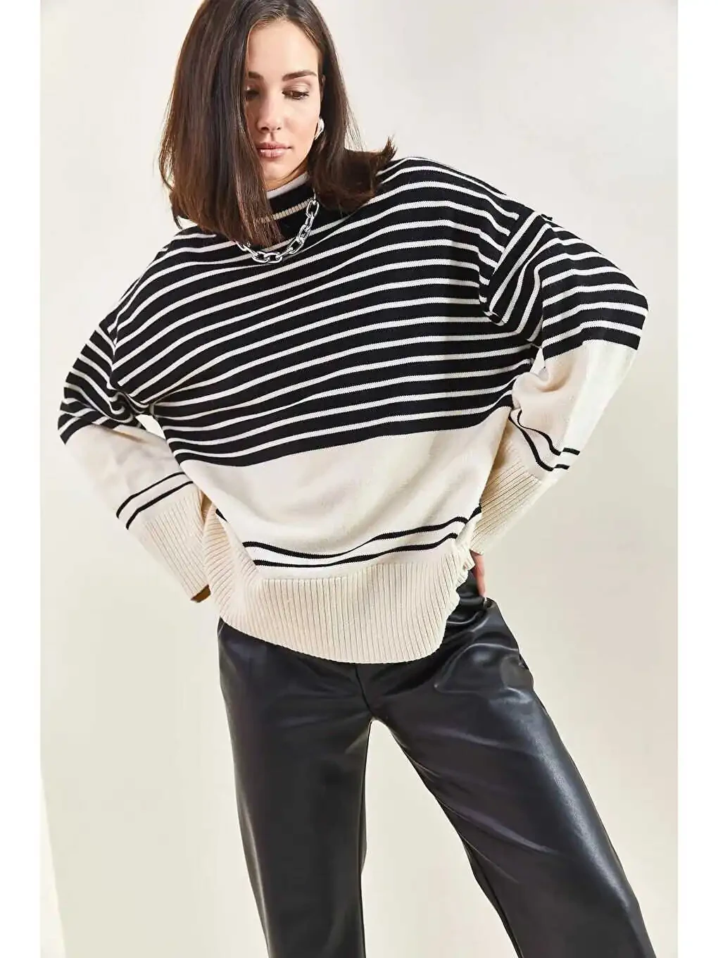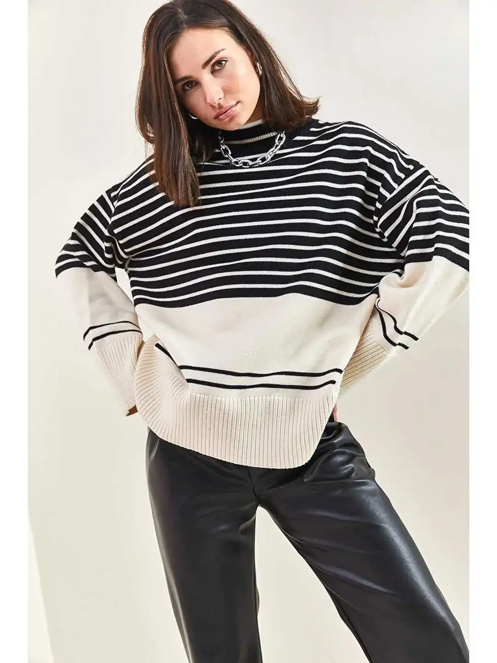 The Women's Striped Knit Sweater is the perfect choice to add style and comfort to your everyday look. Made from premium knit fabric, this sweater offers all-day comfort while creating a modern and sophisticated look.