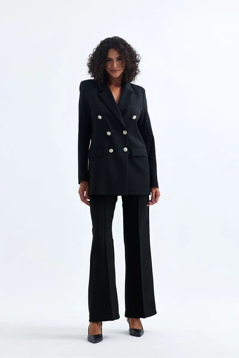 Embrace elegance and sophistication with our women's suit jacket and pants, designed to seamlessly blend into any occasion. This classic black suit will complement any ensemble, ensuring a stunning appearance for both your professional life and special events.
