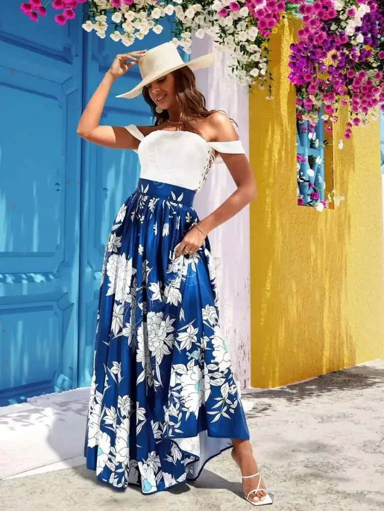 Relaxed fit, knee-length skirt. Made from 100% cotton single jersey fabric. High-waisted.