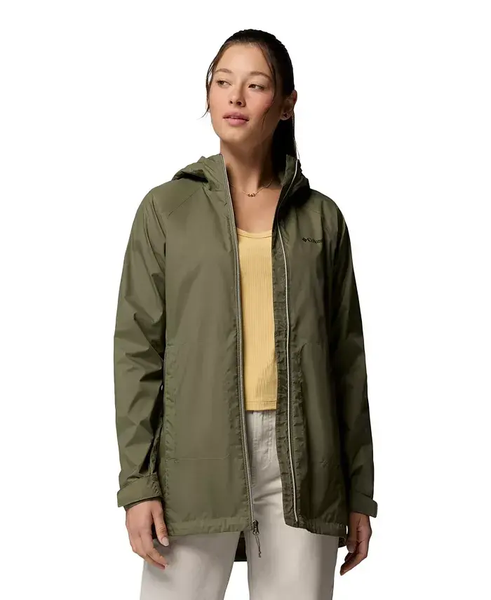 The perfect outer layer for rain coverage and style, this Columbia women's jacket is essential. The water-resistant shell and soft interior lining combine to keep you comfortably dry. Approx. length: 31" Attached, adjustable hood. Zippered hand pockets. Lined Hooded silhouette with chin guard Full zipper Omni-Shield™ advanced repellency. INSPIRED FOR: Outdoor Regular fit High standing collar Shell: 100% nylon ; lining: 100% polyester Machine wash Imported