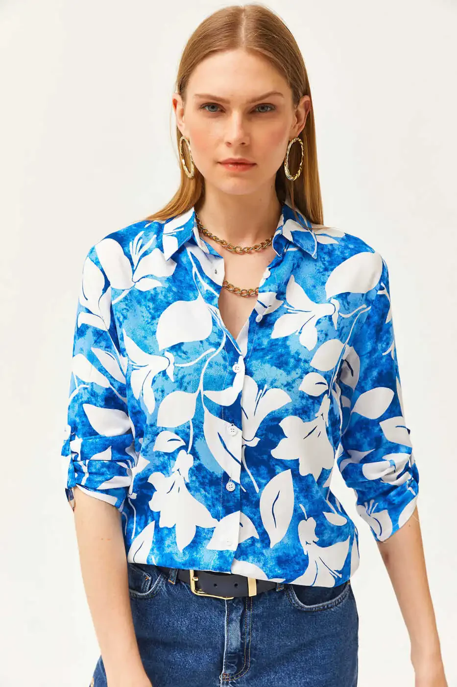 The GML-19001178 Women's Teal Blue Watercolor Effect Woven Shirt will be an indispensable part of your wardrobe. Order now and let the reflection of your free spirit meet your style!