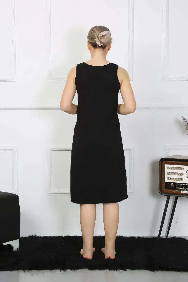 Women's nightgown, Long nightgown, Thick strap nightgown, Knitted nightgown, Black nightgown, Cotton nightgown, 12001 nightgown