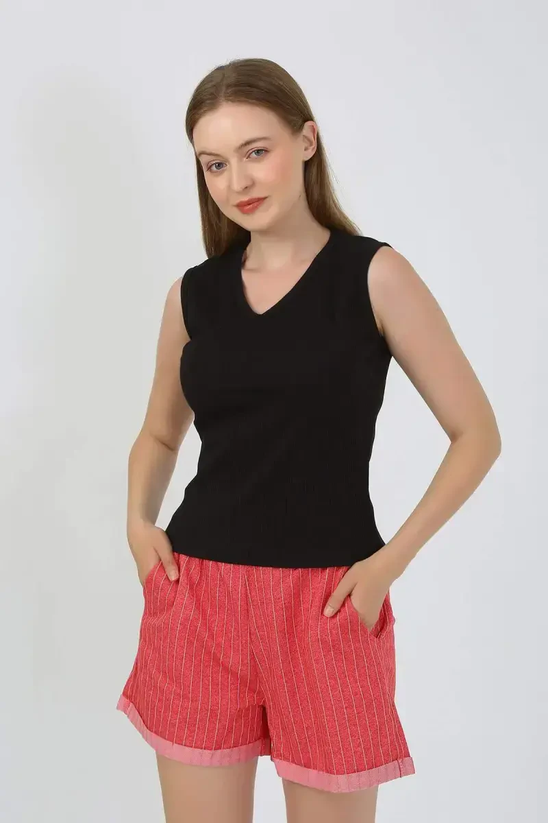 Women's Black Shorts Pajama Set | Thick Strap Comfortable Sleep 3632