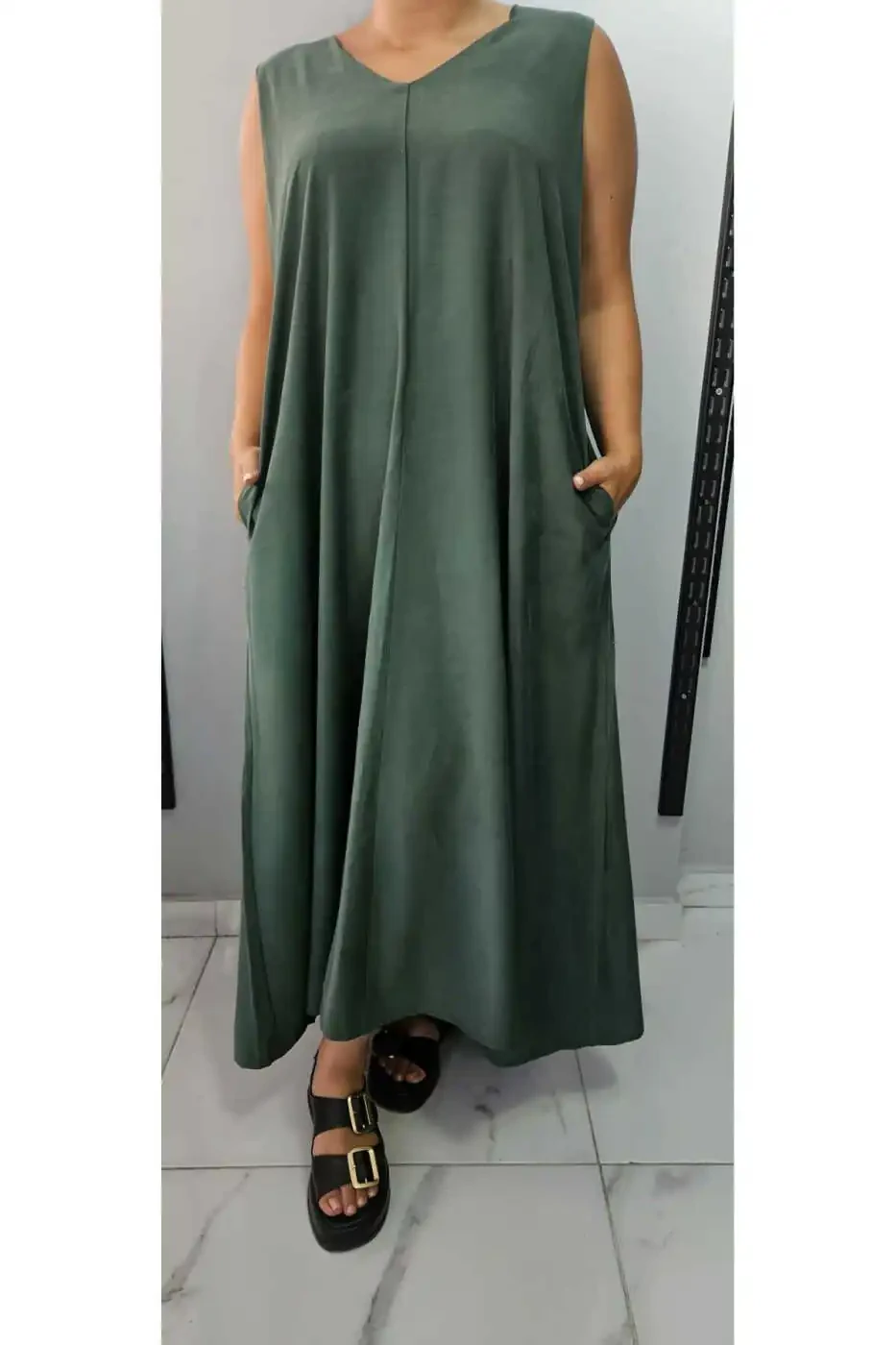 Combining style and comfort, the Women's V-Neck Sleeveless Plus Size Maxi Dress 24135 will be an indispensable part of your wardrobe. Offering a graceful look with its V-neck detail, the dress ensures you stay cool in warm weather with its sleeveless design. Its maxi length makes your legs look long and slender. The dress, which adapts to every size with its plus size options, helps you create a comfortable and stylish look.