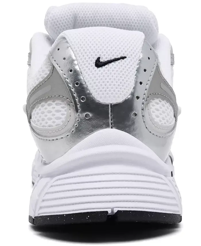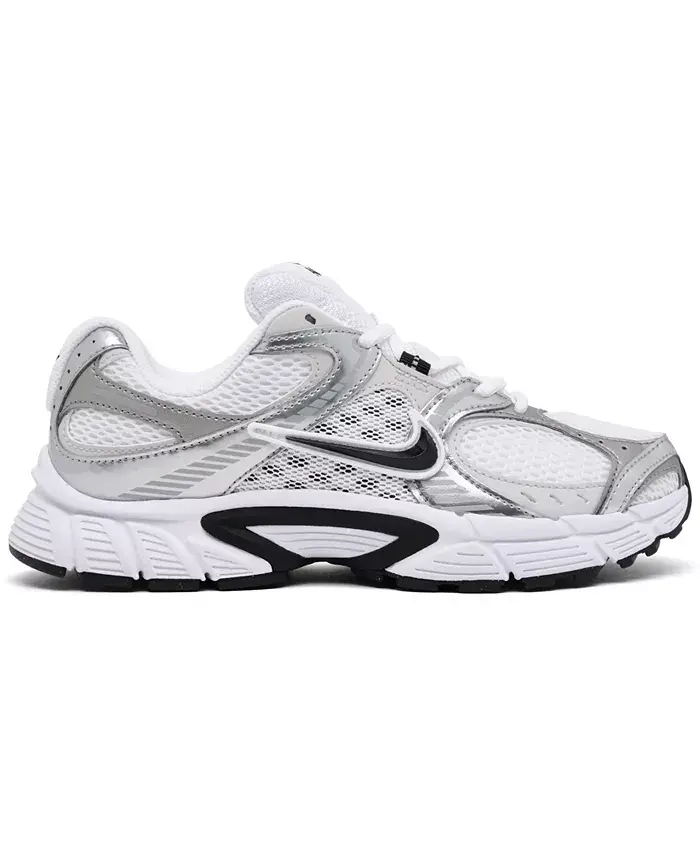 The Nike Women's V5 RNR Casual Sneakers transport early-2000s design cues to the present day for an archival lifestyle runner. Crafted from an airy mesh upper with synthetic leather overlays, this design optimizes Swoosh silhouettes from days past, featuring an ultralight chunky foam midsole, a 3D-embossed Swoosh logo, and metallic detailing for a refreshing, future-proof pair perfect for daily wear. Breathable mesh upper with synthetic leather overlays Plush collar lining for reinforced ankle relief 3D Swoosh logo and metallic detailing for distinctive style Chunky, lightweight foam midsole provides long-lasting comfort Classic lace closure secures the fit Rubber outsole with '00s-inspired grooves for reliable all-terrain traction Style no. HQ7901 Textile and Synthetic upper; Rubber outsole Wipe clean Imported