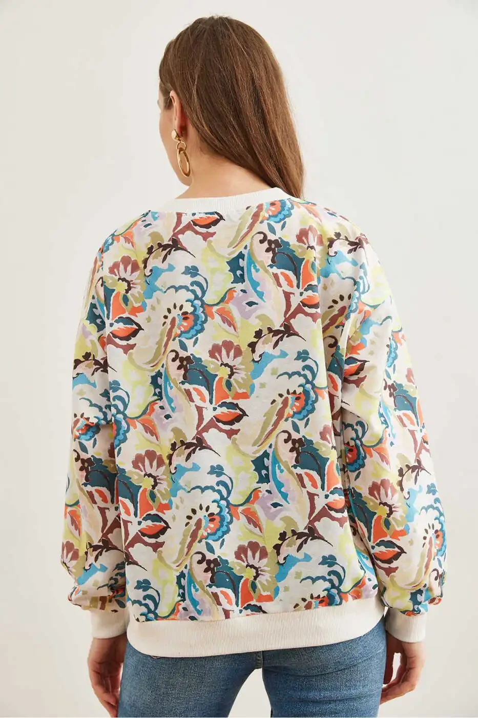 **Women's Watercolour Ecru Basic Soft Textured Loose Sweatshirt SWT-19000457**