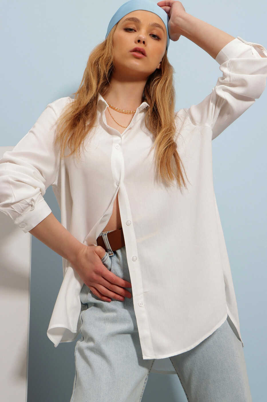 Combining style and comfort, the Women's White Basic Woven Shirt is ready to become an indispensable part of your wardrobe. Offering all-day comfort with its soft texture, the shirt adapts to every style with its elegant and minimalist design.