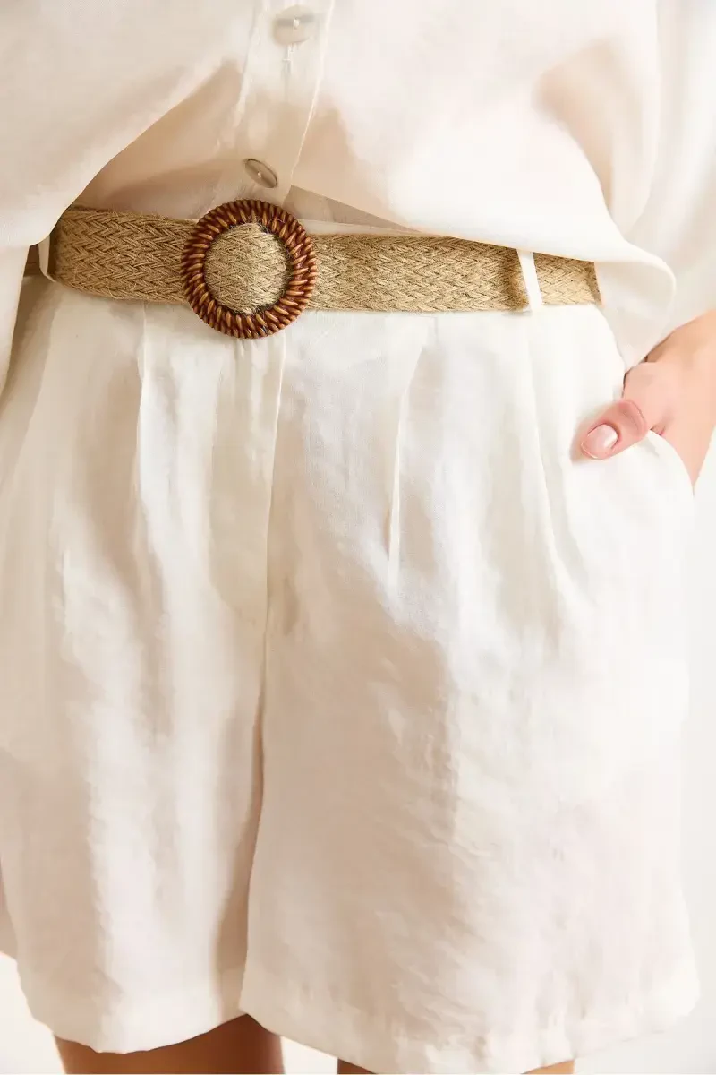 Carry the energy of summer with you with the Women's White Modal Top Shirt with Belted Shorts Set! This stylish and comfortable set is offered to you with the assurance of Olalook Official. This combination, which you can choose for daily use or a special occasion, will be an indispensable part of your wardrobe. The comfortable cut of the top shirt and the modern design of the shorts provide you with comfort all day long, while ensuring that you do not compromise on your stylish appearance. The belt detail adds a different touch to the combination and reveals your body lines in a beautiful way. Thanks to its modal, viscose and nylon blend fabric, it allows your skin to breathe and helps you stay cool even in hot weather. Although this special design is offered by more than one seller, it stands out with Olalook Official quality. You can return this product offered with Trendyol's guarantee free of charge within 15 days. Remember, you can order a maximum of 10 of this product. Different limits apply for corporate orders. The S/36/1 size on the model best showcases the product's elegance and modern cut. This set, which attracts attention with its belted design, is a candidate to be the star of your summer wardrobe. Order now and enjoy the summer with style!