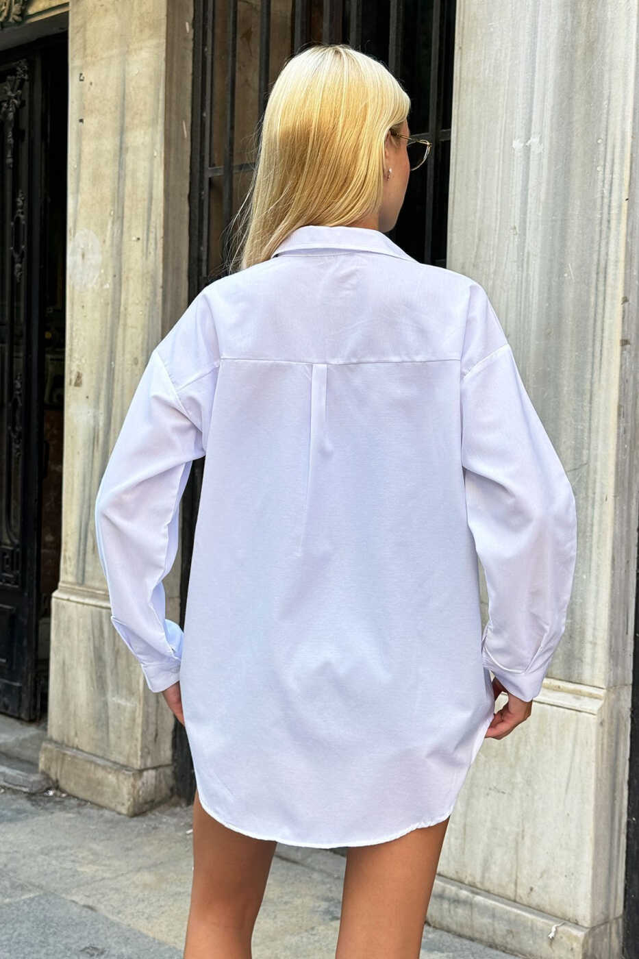 Women's White Oversize Long Woven Shirt ALC-X6828 - Style and Comfort Combined