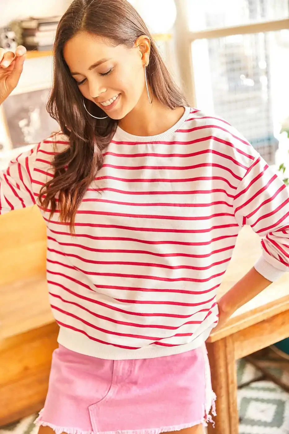 Women's White and Pink Striped Sweatshirt: Style Meets Comfort