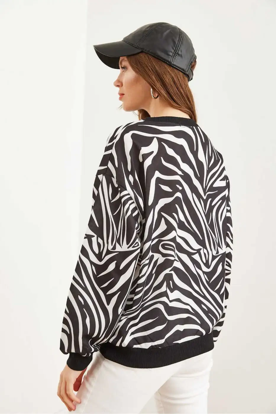 Women's Zebra Basic Soft Textured Sweatshirt | Trendyol