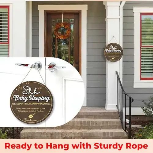 Woodamore Shhh Baby Sleeping belgisi bolangizning uxlashini himoya qilishga va mehmonlaringizga muloyimlik bilan xabar berishga yordam beradi. Uxlab yotgan bolangizning jimjitligini va tinchligini qadrlaydigan ota-onalar uchun ajoyib tanlovdir.