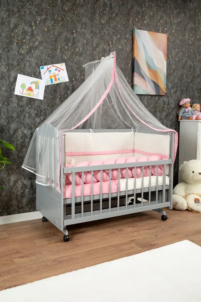 Designed with your baby's comfort and safety in mind, the Wooden Mdf Beside Crib, measuring 60x120 cm, with its 4-level adjustable base, lacquered surface and rocking mechanism, is a candidate to be the biggest helper of parents. This stylish and functional baby crib ensures that your baby has a comfortable sleep experience, while its bedside feature makes it easy to be close to your baby throughout the night. Our crib is made of high quality materials and offers long-lasting use. Special colorants prepared for baby products that do not contain any substances that will harm your baby's health and comply with European standards are used. It does not contain formaldehyde, is produced in E0 standard, has zero lead content and does not contain any heavy metals.Bebeget Beside Crib is not only a crib, but also a safe and comfortable home for your baby in its first years. While its rocking feature helps your baby fall asleep easily, it prioritizes safety with its fixable feature when needed. The height of the crib can be adjusted in 4 different levels, thus adapting to your baby's growth process. Its use as a bedside allows you to be close to your baby throughout the night and easily meet their needs such as breastfeeding.Our crib is made of laminated beech wood and stands out with its durability and robustness. The crib, which is colored with white lacquer paint, adds elegance to the baby room with its stylish and modern design. The crib includes a mattress, bedding set and mosquito net, so you can find everything you need for your baby in one package. Bebeget produces every part of its products in its own factory, and the fabrics, sponges and other raw materials used comply with all safety standards established in our country and in the world. Our fabrics have Oeko-Tex 100 Standard Certificate. This crib, which offers the possibility of use up to 4 years old, also provides convenience thanks to its practical installation. Thanks to its wheeled structure, you can easily move it around in your room. It is an ideal choice for parents who are looking for the best for their baby's comfort and safety. Choose Bebeget Wooden Mdf Beside Crib for your baby to have a comfortable and peaceful sleep experience.