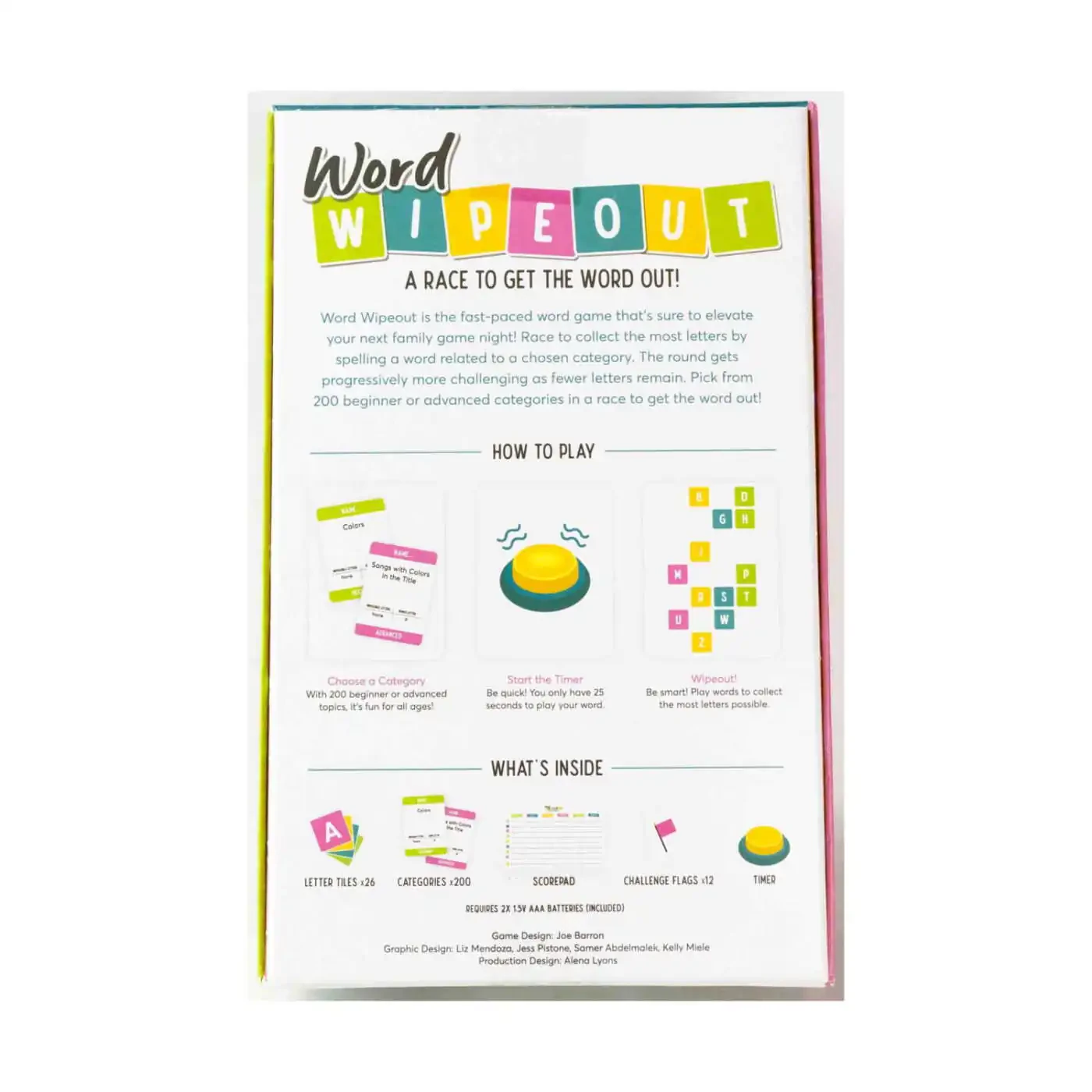 Word Wipeout, qiziqarli va ta'lim beruvchi o'yin tajribasini taqdim etadi. O'yin, o'yinchilarning so'z boyliklarini kengaytirishlariga, tez fikrlash qobiliyatlarini rivojlantirishlariga va strategik rejalashtirishni amalga oshirishlariga yordam beradi. Shu bilan birga, oila va do'stlar o'rtasida aloqa o'rnatish va yoqimli vaqt o'tkazishni ta'minlaydi. O'yinning ixcham dizayni tufayli uni istalgan joyga olib borishingiz va istalgan vaqtda o'yin-kulgini boshlashingiz mumkin. Bardoshli materiallardan tayyorlanganligi, uzoq yillar davomida zavq bilan o'ynashingizni kafolatlaydi. Word Wipeout, ham bolalar, ham kattalar uchun ideal sovg'a tanlovidir. Tug'ilgan kunlar, maxsus kunlar yoki ta'til davrlari uchun ajoyib syurpriz bo'lishi mumkin.