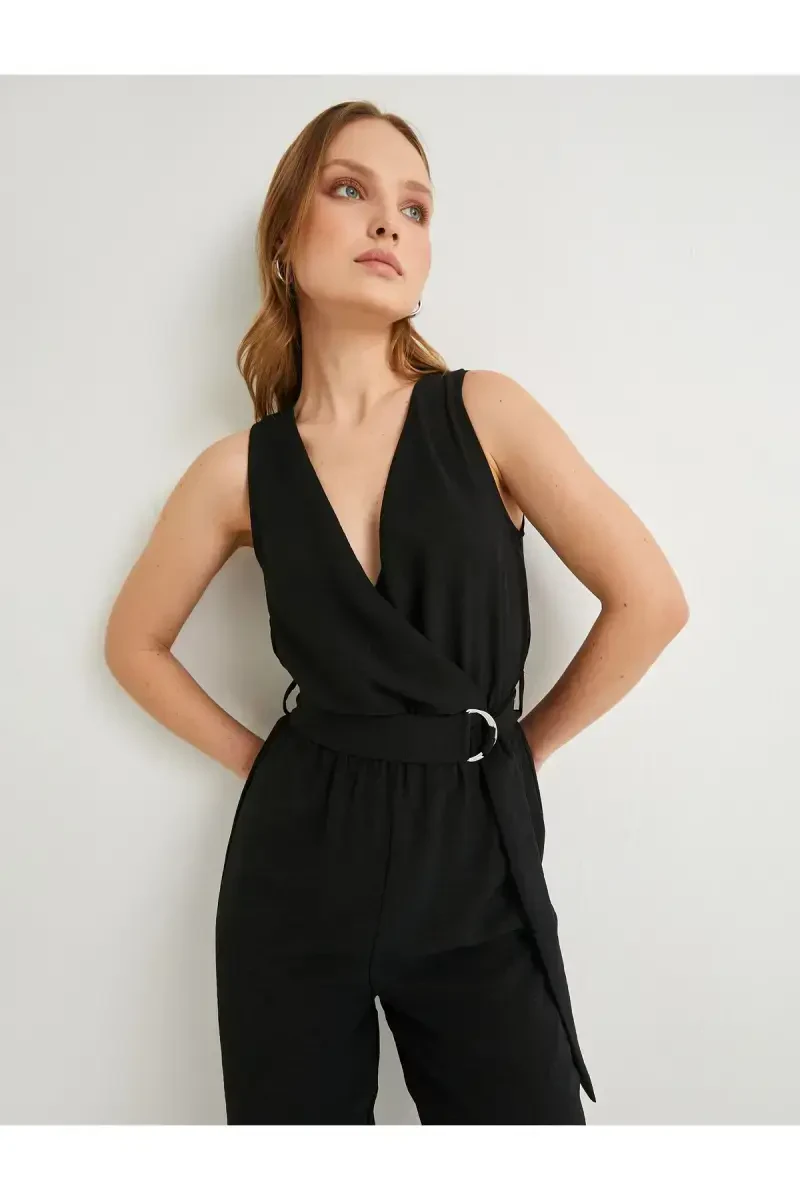Wrap Jumpsuit with Belt Detail, V-Neck, Sleeveless, and Pockets is a special design that combines elegance and comfort. The wrap cut gently emphasizes body lines, while the V-neck detail adds a feminine touch. Thanks to its sleeveless design, it offers a cool and comfortable use even in hot weather. The belt detail helps to accentuate the waistline of the jumpsuit, creating a more fitted look. Functional pockets provide practicality for daily use. This jumpsuit is a versatile piece that you can easily prefer for both daily activities and special occasions. Thanks to its high-quality fabric, it offers long-lasting use and can be easily combined. It is an ideal choice for women who seek elegance and comfort together. Whether you want to achieve a stylish look with high heels or create a more relaxed style with sandals, this jumpsuit will complement your style in any case. It is a candidate to be one of the indispensable pieces of your wardrobe. This jumpsuit, which appeals to every taste with its different color and pattern options, is a timeless piece that you can use in every season. This jumpsuit, which you can prefer whenever you want to feel special and beautiful, is an excellent option to reflect your style. It is designed for those who want to look stylish without sacrificing comfort all day long. With its wrap cut, V-neck detail, sleeveless design, belt detail, and pockets, this jumpsuit is both a stylish and useful option. It will help you create a striking and unique style in any environment.