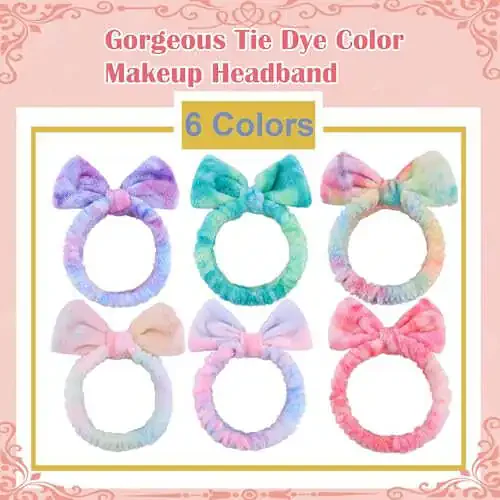 WSYUB Teriga Parvarishi uchun Bosh Bog‘lami, 6 dona, Bağ bo‘yash rangli, Yumshoq Marjon Fleece, Elastik, Yuvish mumkin, Qayta ishlatiladigan, Ayollar, Qizlar, Yuz Makiyaji, Dush, Mashq, To‘y Hediyasi uchun