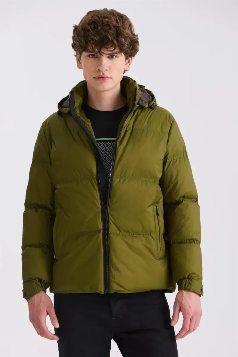Зимняя куртка с капюшоном хаки Comfort Fit: защита от холода