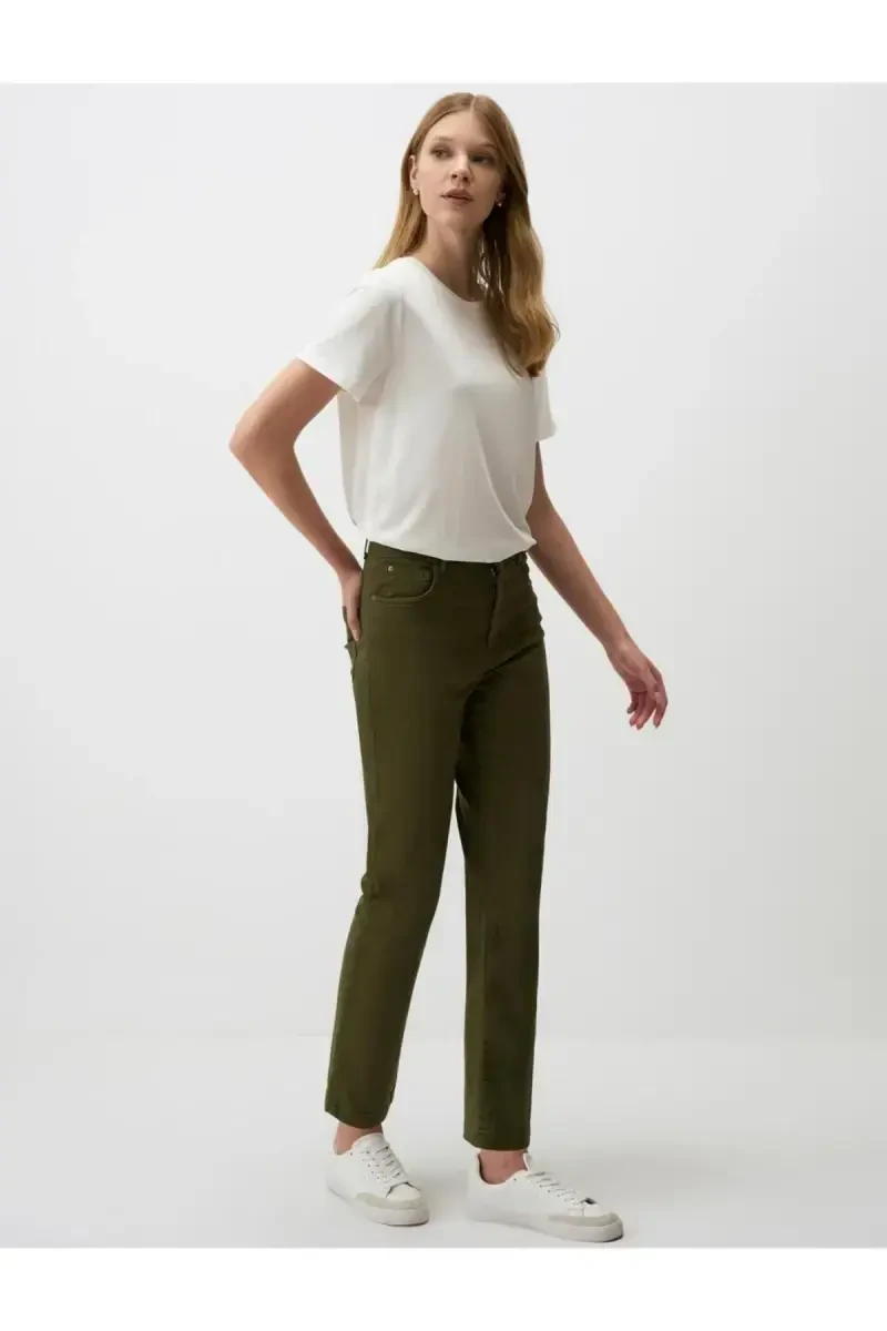 Vaqtsiz klassik bo'lgan xaki rang, baland bel va oddiy paça kesimi bilan zamonaviy siluetni taqdim etuvchi Xaki Baland Bel Oddiy Paça Denim Shimlar, gardrobingizning ajralmas qismlaridan biriga aylanishga nomzod. Ham chiroyli, ham qulay foydalanishni ta'minlaydigan ushbu shimlar, kundalik hayotdan tortib to maxsus tadbirlargacha har qanday muhitda sizga hamroh bo'ladi. Baland bel dizayni, belingizni ingichka ko'rsatib, oyoqlaringizni uzunroq ko'rsatib, yanada nafis ko'rinish beradi. Oddiy paça kesimi esa har qanday poyabzal bilan mukammal uyg'unlashadi. Chidamli denim matodan ishlab chiqarilgan shimlar, uzoq muddatli foydalanish uchun idealdir. Rangini yo'qotmaydigan va oson deformatsiyalanmaydigan tuzilishi bilan uzoq yillar davomida ilk kundagi chiroyini saqlaydi. Xaki rang, har qanday rang va naqsh bilan osongina kombinatsiyalanishi mumkin, buning natijasida siz gardrobingizdagi boshqa qismlar bilan uyg'un holda foydalanishingiz mumkin. Istaganingizcha oddiy futbolka va sport poyabzallari bilan kundalik uslubni yarating, istasangiz chiroyli bluzka va poshnali poyabzallar bilan kechki tadbirlarda ko'zni qamashtiring. Ushbu shimlar, har doim chiroyli va zamonaviy ko'rinishingizni ta'minlaydi. Ko'p qirrali foydalanishi va qulayligi bilan Xaki Baland Bel Oddiy Paça Denim Shimlar, zamonaviy ayolning garderobida albatta bo'lishi kerak bo'lgan qism.