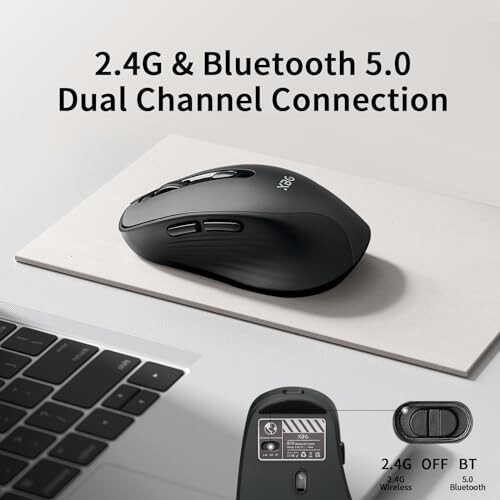 Dual-Mode Bluetooth Mouse for Laptop(BT 5.0+2.4GHz): with a dual-mode connection, you can switch freely between two devices with one Bluetooth mouse with a simple switch. Easy to use from desktop to laptop, or tablet to Macbook/phone. Adjustable DPI & Unique Design: this wireless computer mouse adopts contrasting color and asymmetric design, derived from the exploration of ergonomics and comfort experience, and is highly recognizable at the same time. 6 efficient buttons and 3 adjustable Dpi levels (1200/2400/3200) to meet your daily work or gaming needs. Rechargeable Mouse/Automatic Sleep: built-in large-capacity 500 mAh rechargeable battery, equipped with type-c charging port, no need to replace the battery. The rechargeable mouse will automatically enter sleep mode after 5 minutes of inactivity to save power, better energy efficiency, and environmental protection. Silent Mouse (left and right buttons): the silent laptop mouse is suitable for public places such as libraries, dormitories, offices, etc. Click boldly without worrying about disturbing others. 1-Year Warranty: 30 days no questions asked money back and 12 months repair warranty. This wireless mouse is compatible with Windows 7/8/10/11, Vista, and Mac OS systems. At the same time, Bluetooth 5.0 is compatible with Windows 8/10/11 (but not Windows 7 or XP), Android, and Mac OS systems.