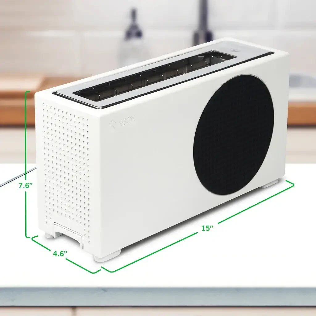 Get ready to level up your breakfast! With the Xbox Series S 2-Slice Toaster, transform your toasting experience into a true achievement. This unique appliance will not only toast your bread but also elevate your kitchen's look to the next level. This is no ordinary toaster; it's a kitchen appliance you'll admire for its functionality and style. Featuring a shade selector dial that lets you choose your desired browning level, from lightly toasted to dark, you'll achieve perfect results every time. Ideal for bread, bagels, frozen waffles, and English muffins. If you live with family members or roommates, everyone can save their toasting settings and quickly prepare their ideal breakfast every morning. With the countdown timer, you'll always know when your toast is ready; cold and stale bread or unexpected delays are a thing of the past. But there's more to look forward to! The Xbox Series S Toaster imprints the iconic Xbox sphere logo onto your toast during the heating process, transforming it into a true gaming console experience. Go beyond the ordinary breakfast experience and start your day uniquely. The toast of the future awaits you. Order now and celebrate achieving the perfect crispness!