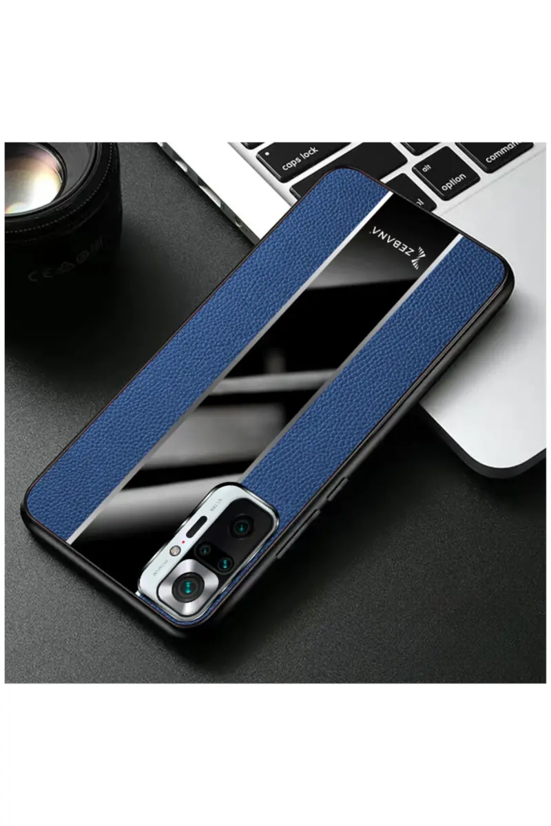 Xiaomi Redmi Note 10 Pro Uyumlu Kılıf Premium Deri Kılıf Mavi-Mavi