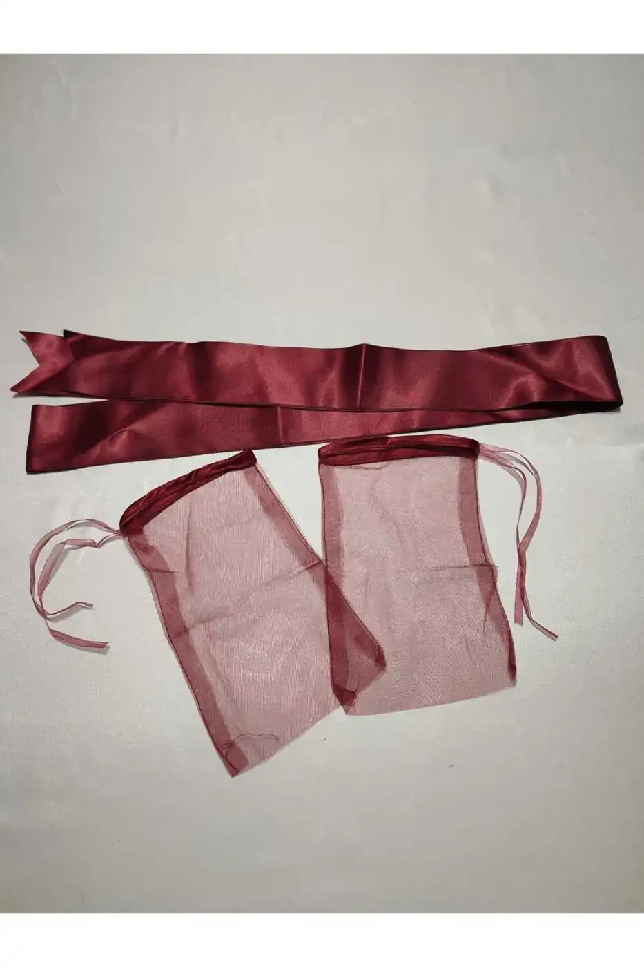 Xina Kechalari Uchun Bordo Munchoqli Kelin Xina Parda, Kamar Va Qo'lqoplar To'plami