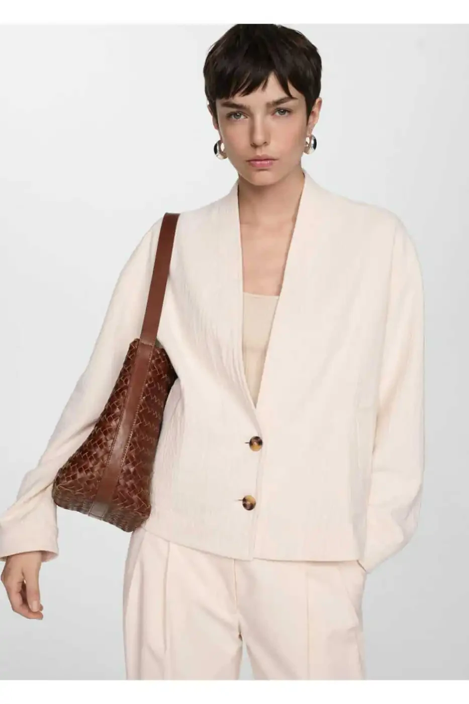 Хлопковая куртка с V-образным вырезом | Удобная и стильная повседневная одежда
