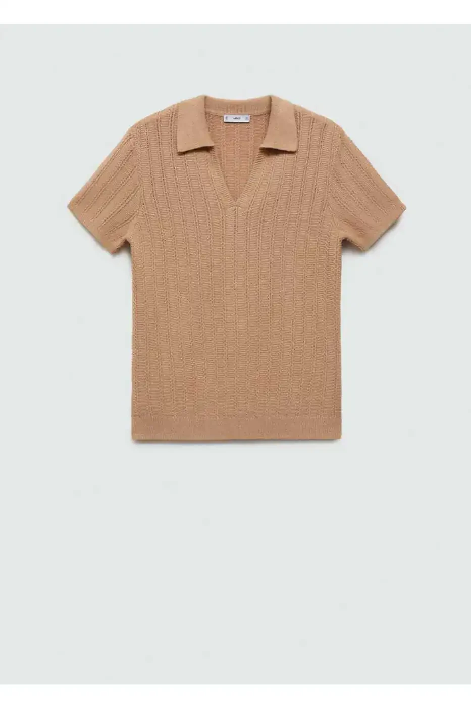 рубашка поло, хлопковая рубашка поло, рубашка поло с узором, рубашка поло с короткими рукавами, рубашка поло с V-образным вырезом, рубашка поло из толстой вязки