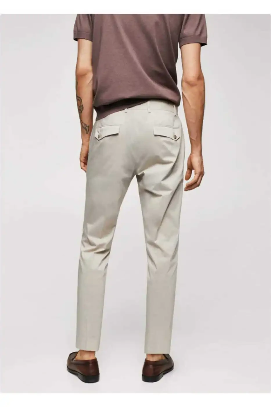**Легкие хлопковые брюки: идеальное сочетание стиля и комфорта**Эти легкие хлопковые брюки, доставляемые быстро компанией Trendyol, добавят в ваш гардероб нотку изысканности, сохраняя при этом ваш комфорт в течение всего дня. Они изготовлены из 67% хлопка и 33% переработанного полиэстера, что делает их мягкими, дышащими и прочными.**Стильные детали:*** Узкий крой подчеркивает ваши ноги и создает современный образ.* Тонкая ткань придает изысканный вид и ощущение премиум-класса.* Складки добавляют элегантный штрих, удлиняя ваш силуэт.* Застежка на две пуговицы и молнию обеспечивает надежную и удобную посадку.* Шлевки для ремня позволяют добавить ремень для индивидуальной посадки.**Практичные особенности:*** Боковые карманы надежно и удобно хранят ваши вещи.* Два задних кармана с клапанами и пуговицами обеспечивают дополнительное место для хранения.* Внутренний шов 73,9 см и внешний шов 101,0 см обеспечивают отличную посадку для высоких мужчин.**Инструкции по уходу:*** Машинная стирка при температуре не выше 30°C.* Не отбеливать.* Гладить при температуре не выше 110°C.* Не подвергать химчистке.* Не сушить в стиральной машине.**Информация о модели:*** Модель ростом 190 см и носит размер 42.